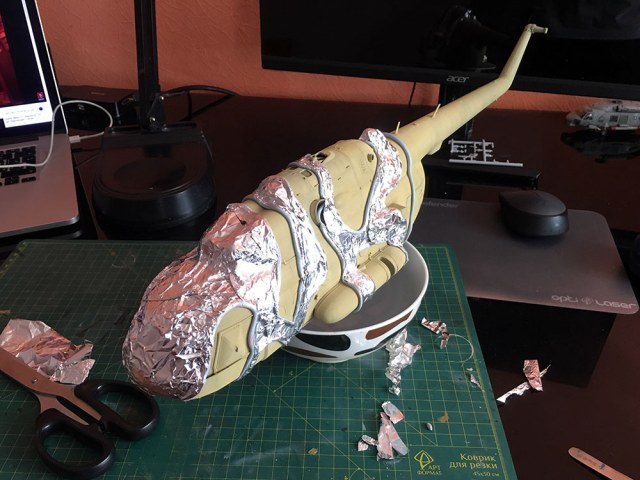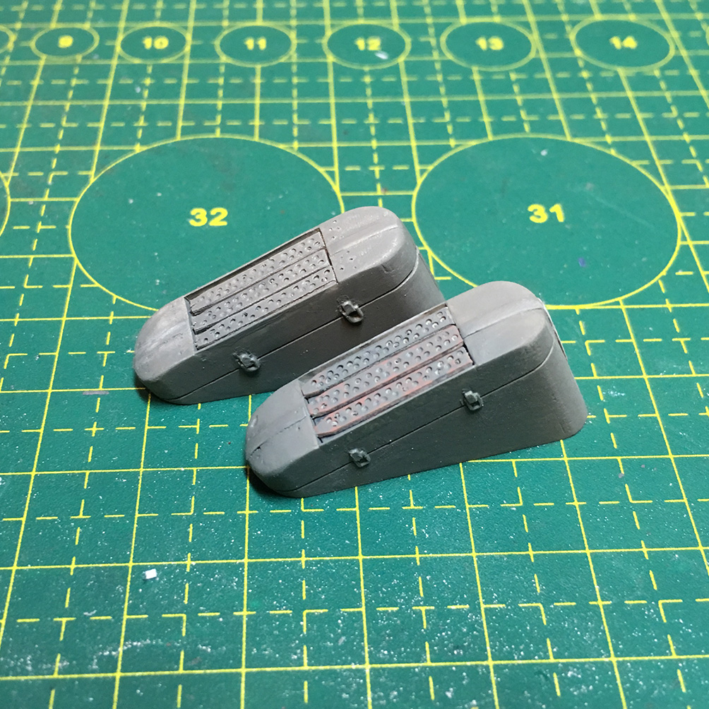 Восстановил кое-где утраченный "клёп", приклеил ручки. Владелец модели сказал что не хватает одной такой, а по факту оказалось 7 шт. Пришлось лепить из литника (и сейчас по фото понял что забыл еще 2шт. ). Так же добавил крепеж для ЭВУ.