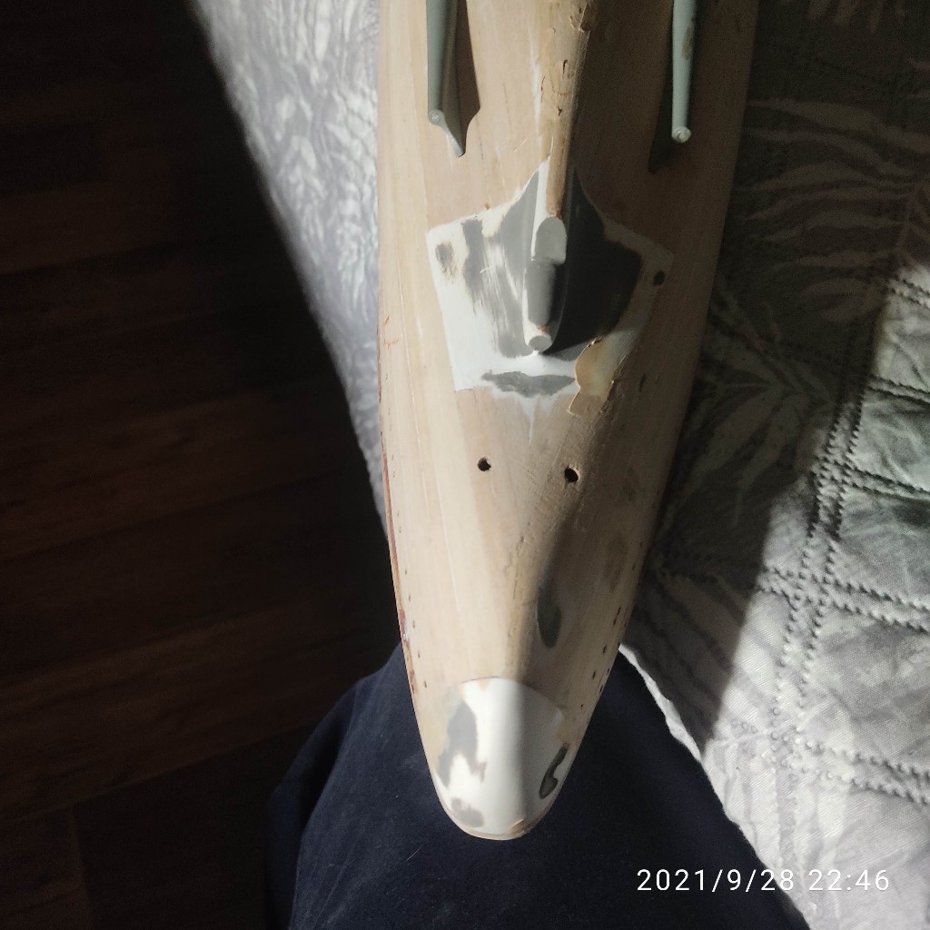 Прикупил эпоксидную смолу и марлю. Взял у знакомого немного автошпаклевки и отвердителя. Замазал скол на носовой детали, щели стыков и борта сверху. Все закрылось как надо, ступенька сформировалась. Жду высыхания. Отвердителя много было. Встанет шустро. Обточу и начну смолой покрывать..... Ну я ЕС честно хз граждане как это у меня будет выглядеть в итоге. Как её потом обработать правильно. Чтоб ровно все было. Купил обычную смолу.