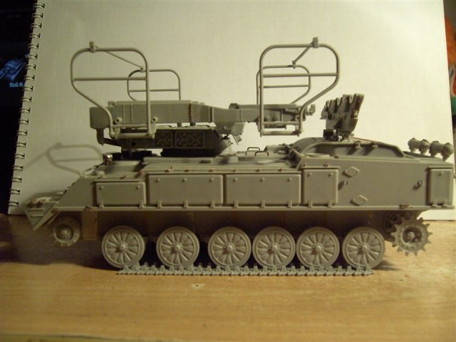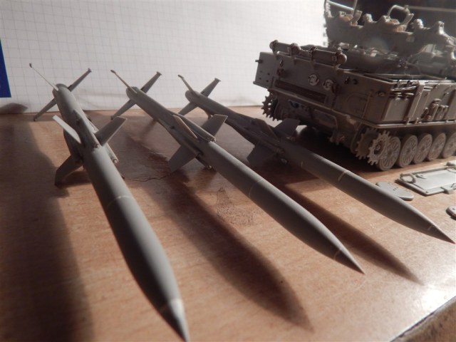 Наконец-то гусеничные ленты и 2 запасных трака готовы. Работы по сборке самой 2П25М3 практически завершены. Приступаю к ракетам.