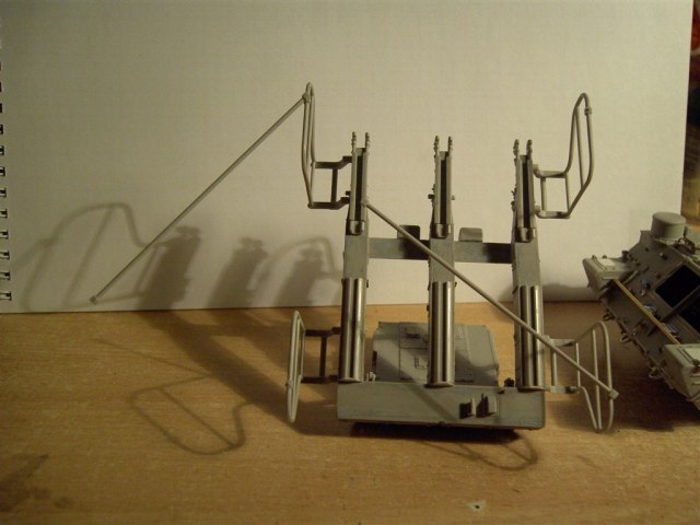 Рассверлил верхний левый и правый нижний леера, сделал крепления поперечных подвижными - для обеспечения возможности перевода артчасти из походного в боевое положение.
