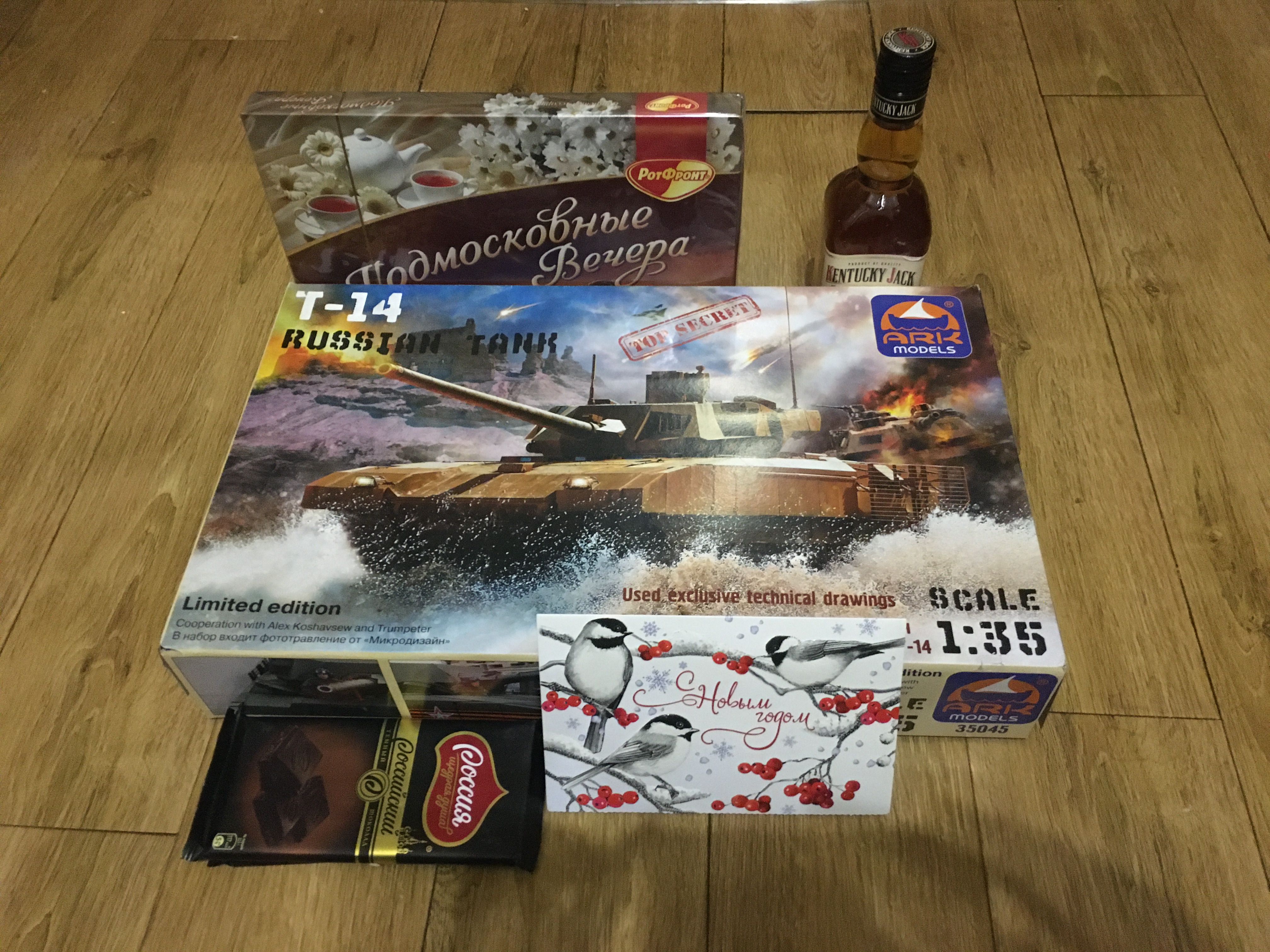 Всех с Наступающим!!! В понедельник стал дедом, а сегодня внучком, забежал на почту и получил свой подарок из города Каменск-Уральский, от Константина Георгиевича!!! Спасибо тебе дедушка большое за подарок, танки в 1/35 еще не собирал!! фото загрузить у меня не получилось