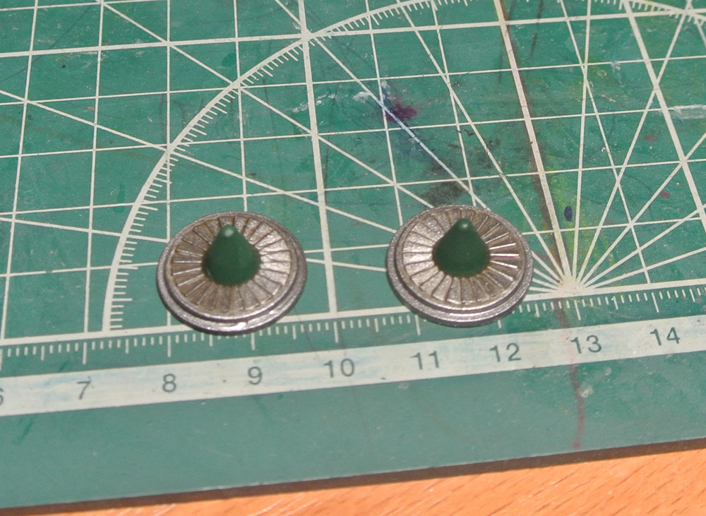 6) Колеса задуты в "Пустынный песчаный №50", покрашены бандажи в "Вороненая сталь №08" и пока только на передних колесах, для сравнения с задними, попытался изобразить фактуру дерева.
