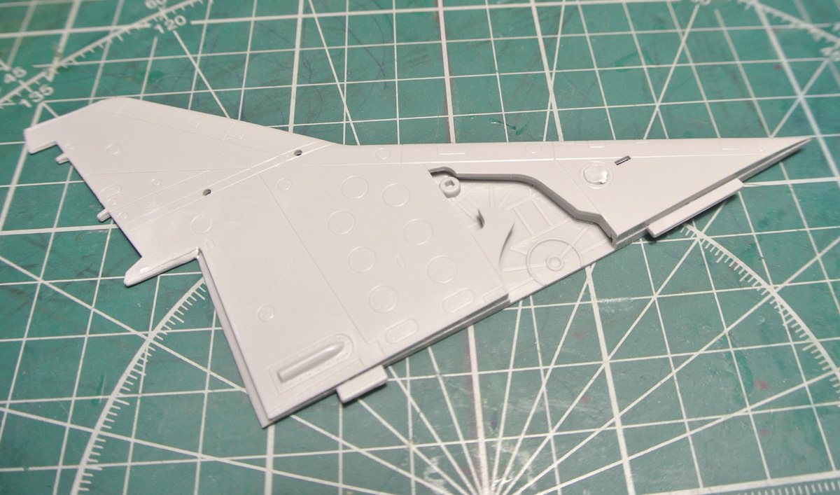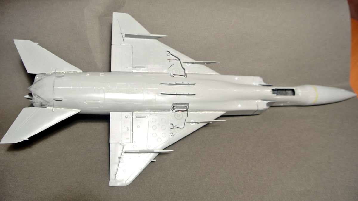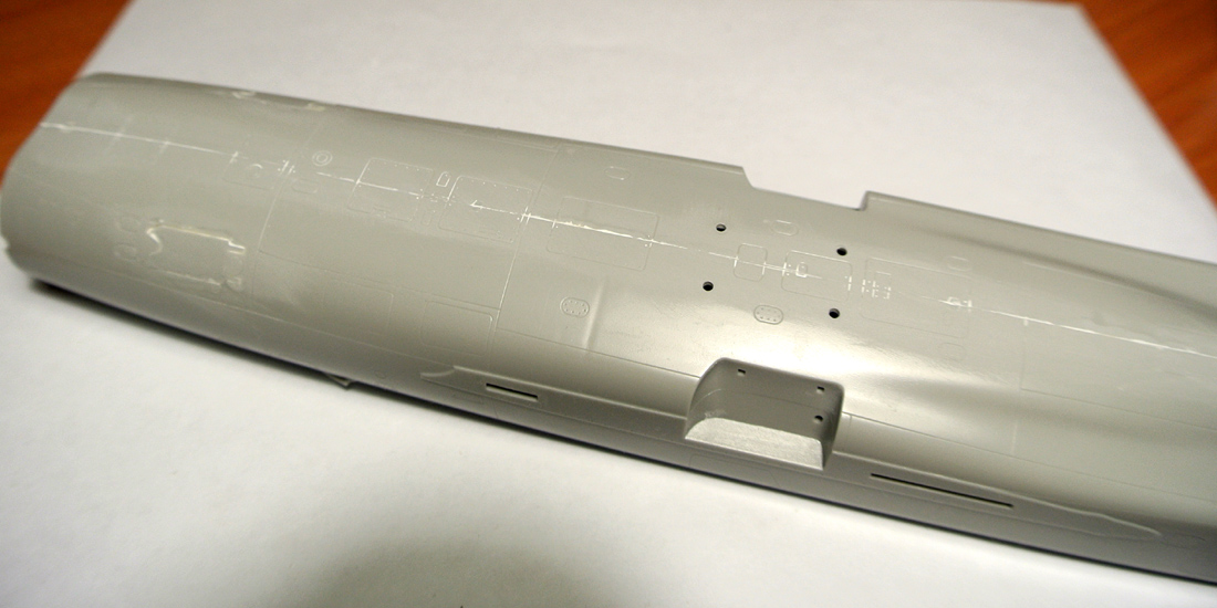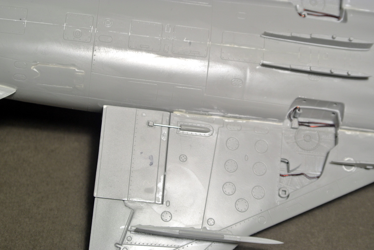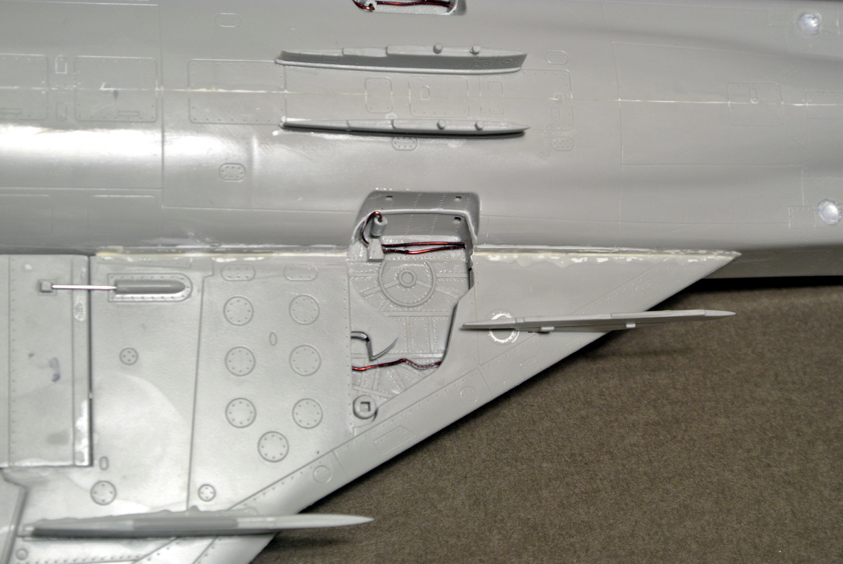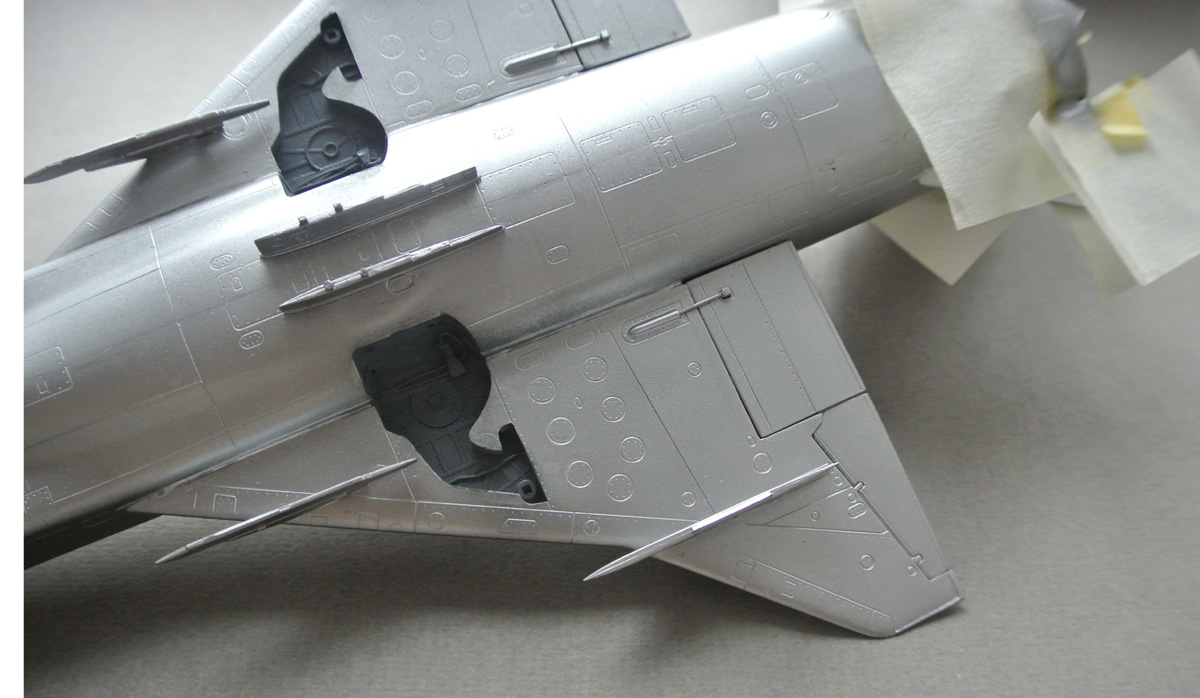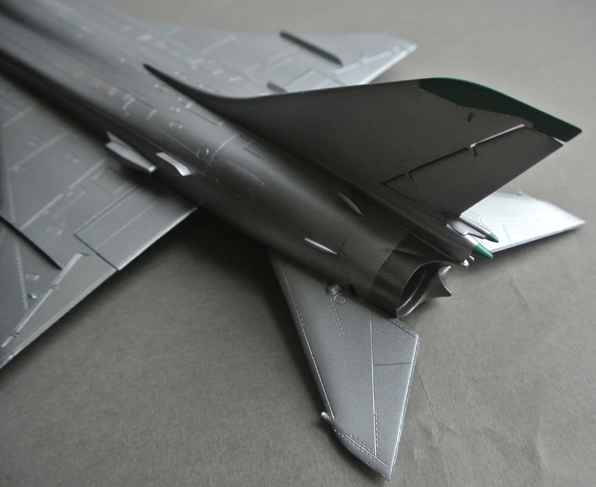Загрунтовал, покрасил ниши осн. стоек шасси, конус, верх киля. Сдвижную часть фонаря приклеил временно, для удобства, потом ее установлю в открытое положение.