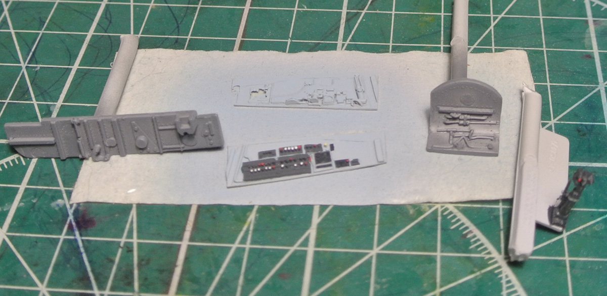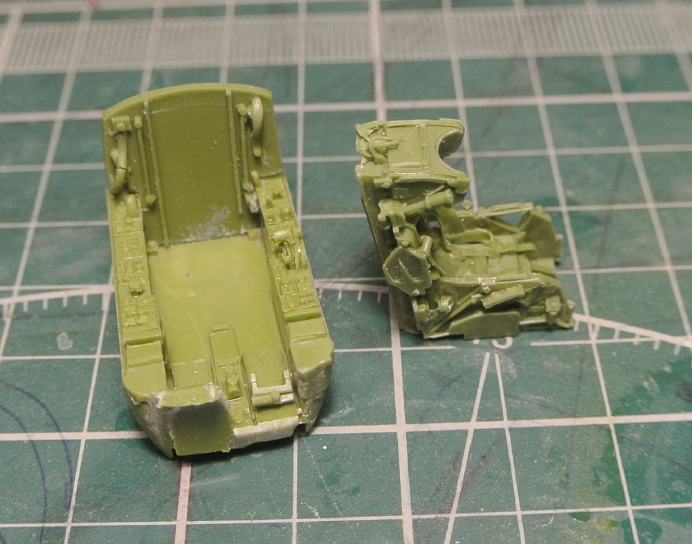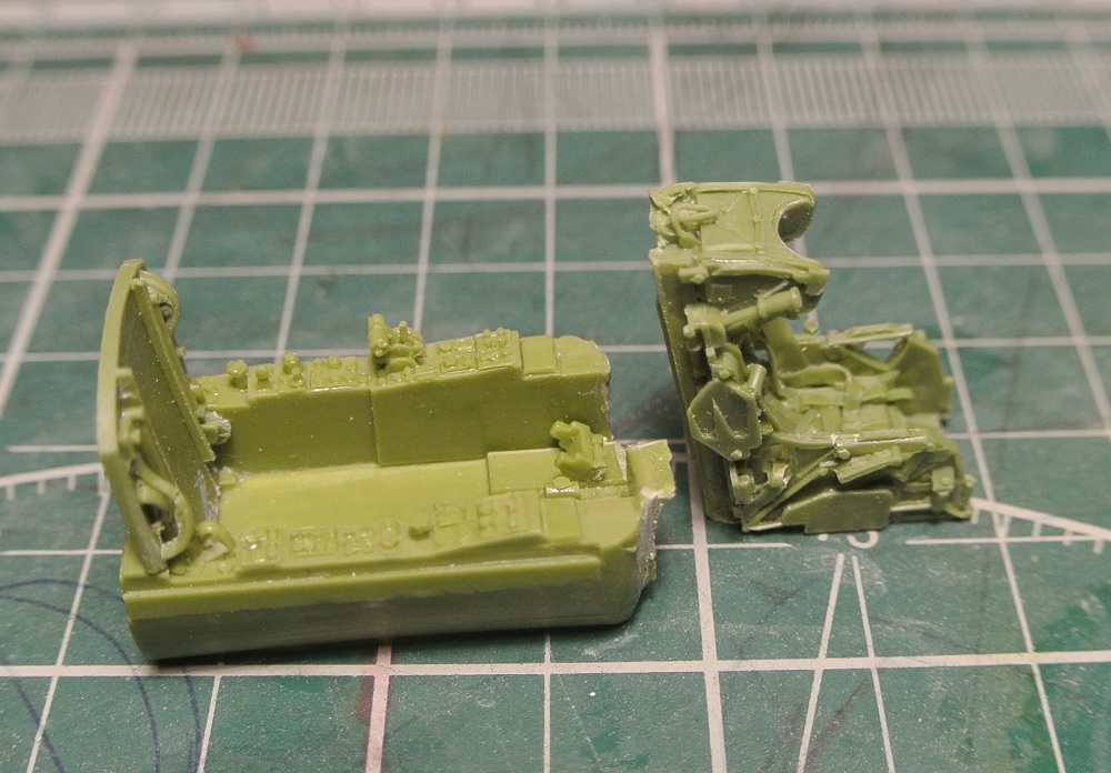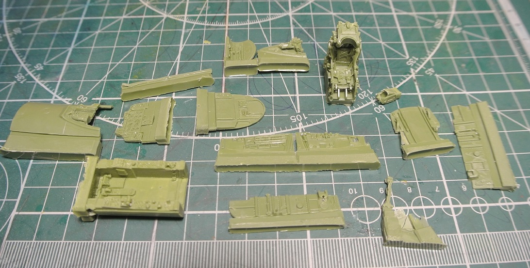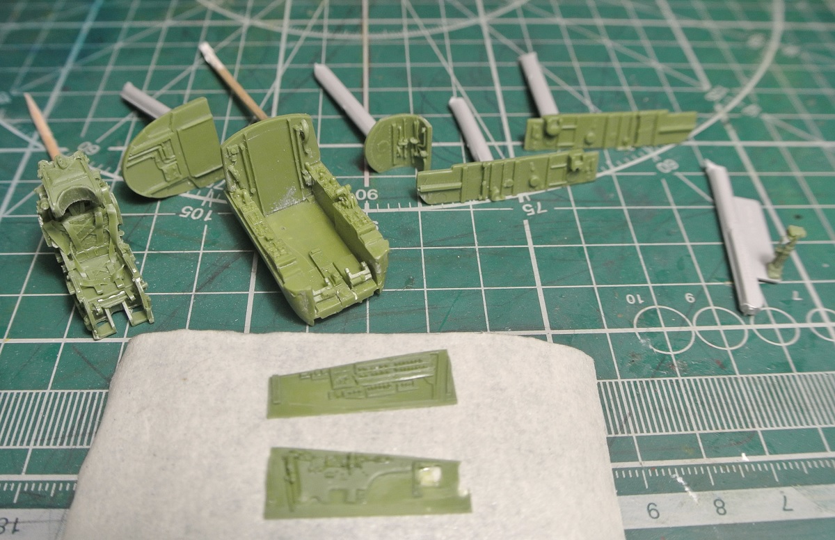 Небольшое продвижение. Подготовил детали кабины и ниши передней стойки шасси к грунтовке.