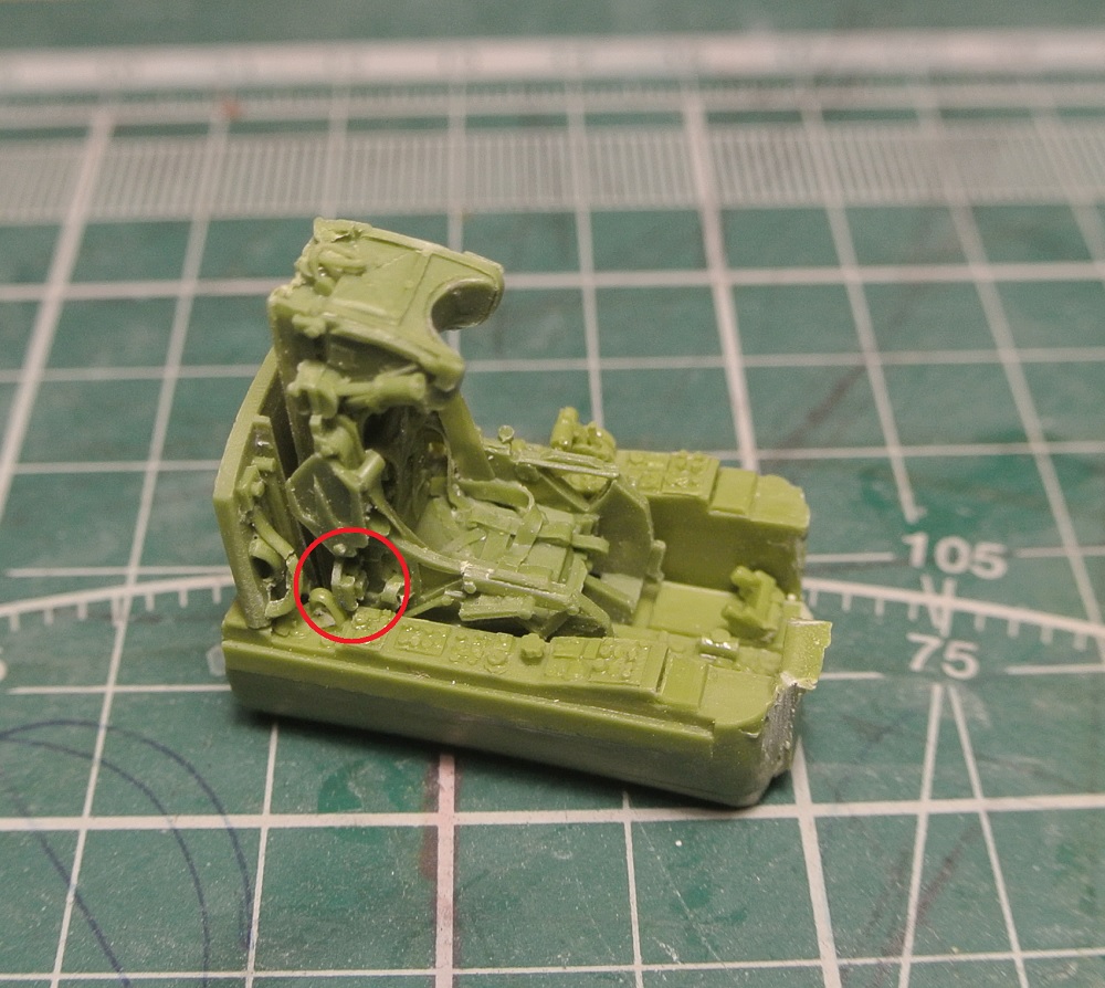 Немного попилил кабину, поломал некоторые детали ) Есть ли у кого-нибудь фотографии уже собранной? А то не совсем понятно, как она должна быть. Вот на фото кресло не садится до конца из-за места, которое отмечено на фотографии.