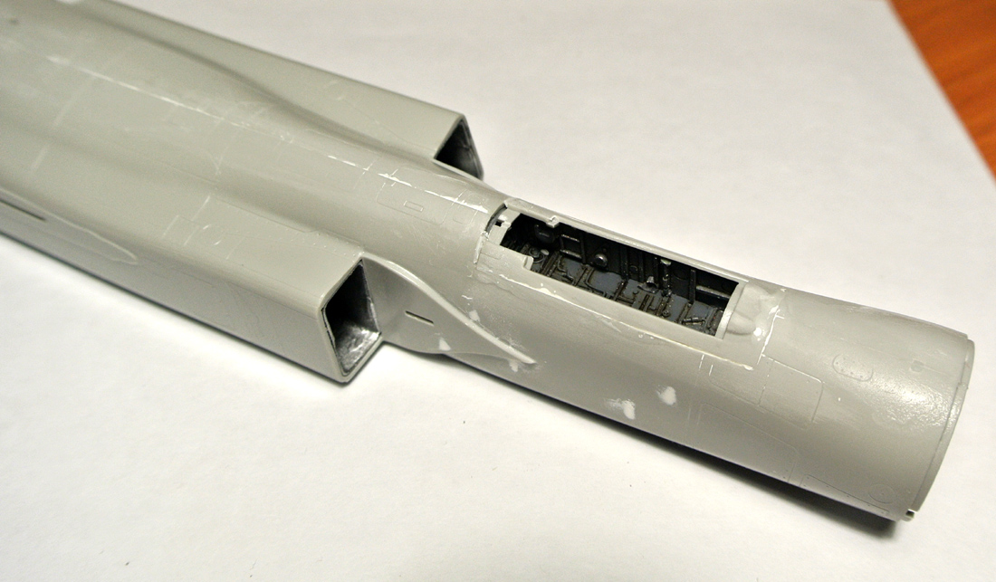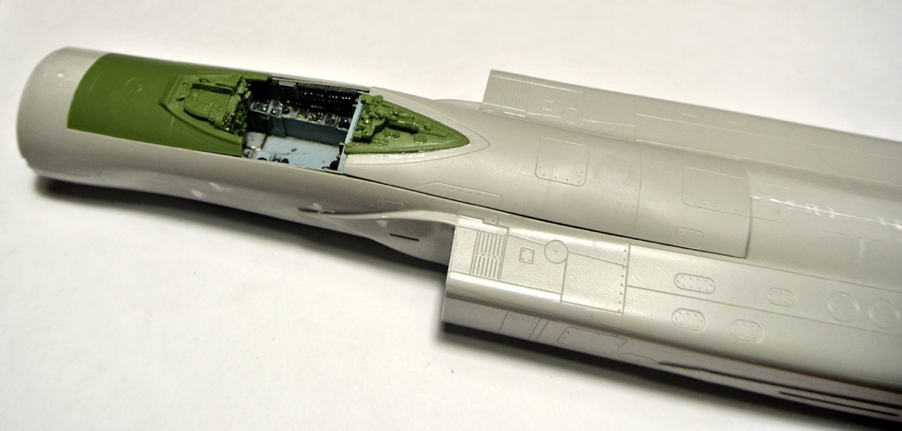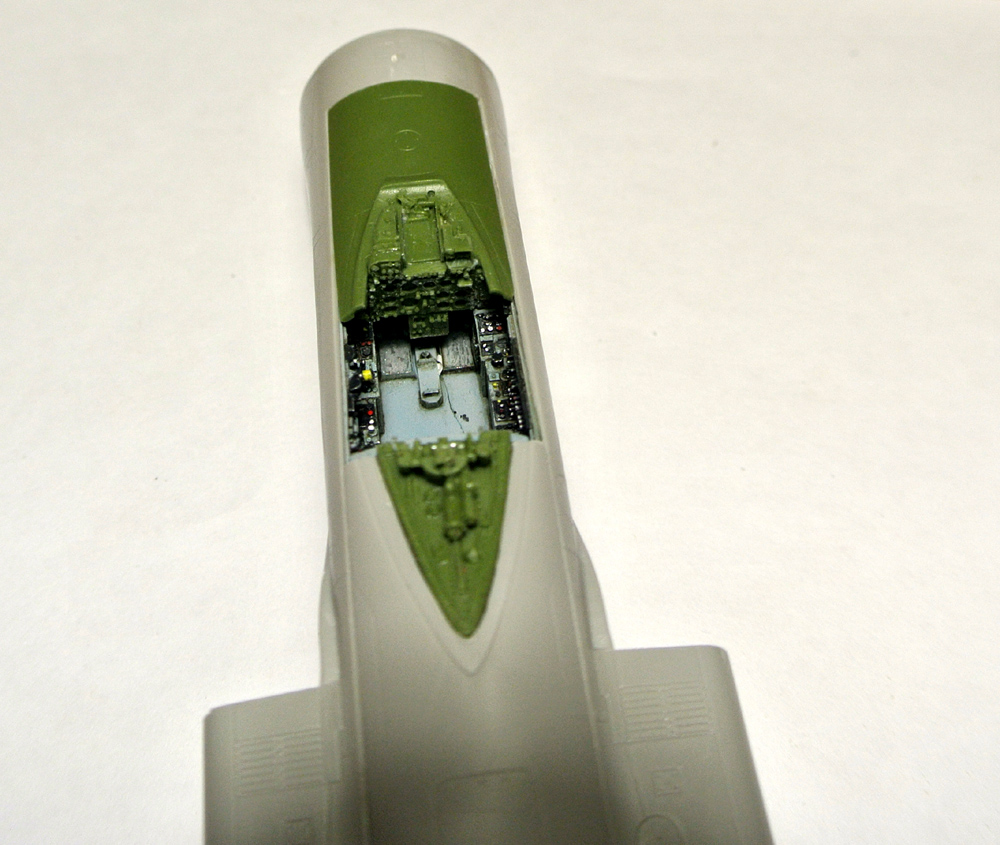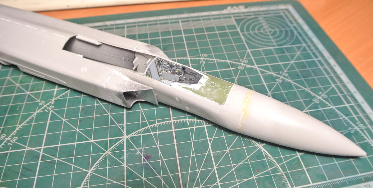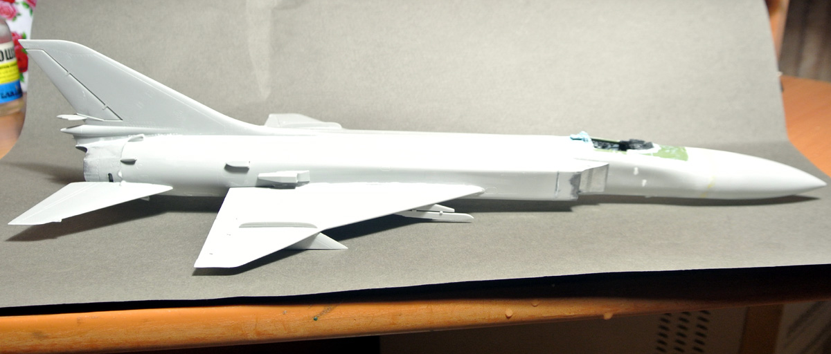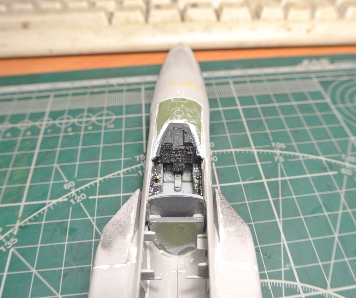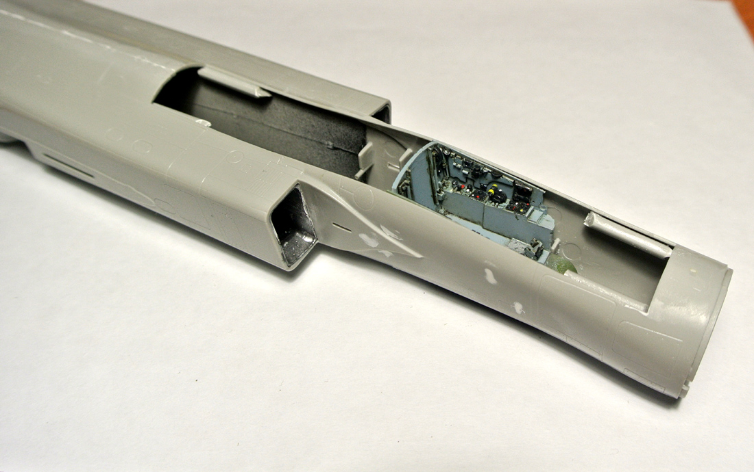 Покрасил боковые панели, "ванну" кабины, начал окраску кресла. Заодно зашпаклевал утяжины на фюзеляже. Решил все же собрать и немного (с краев) изнутри зашпаклевать не окрашивая заранее воздушные каналы к двигателям, так как там внутри образуются огромные щели при сборке.