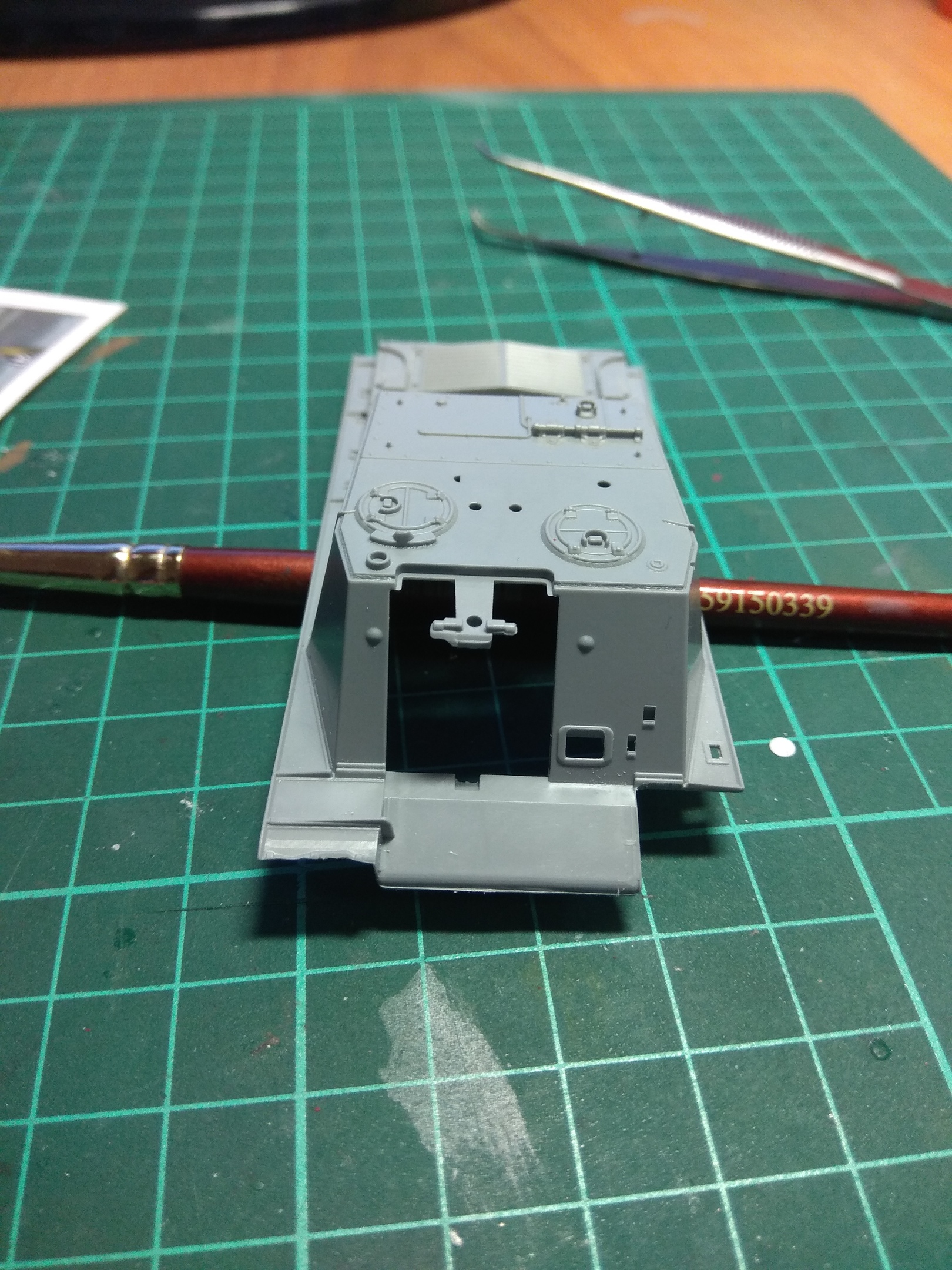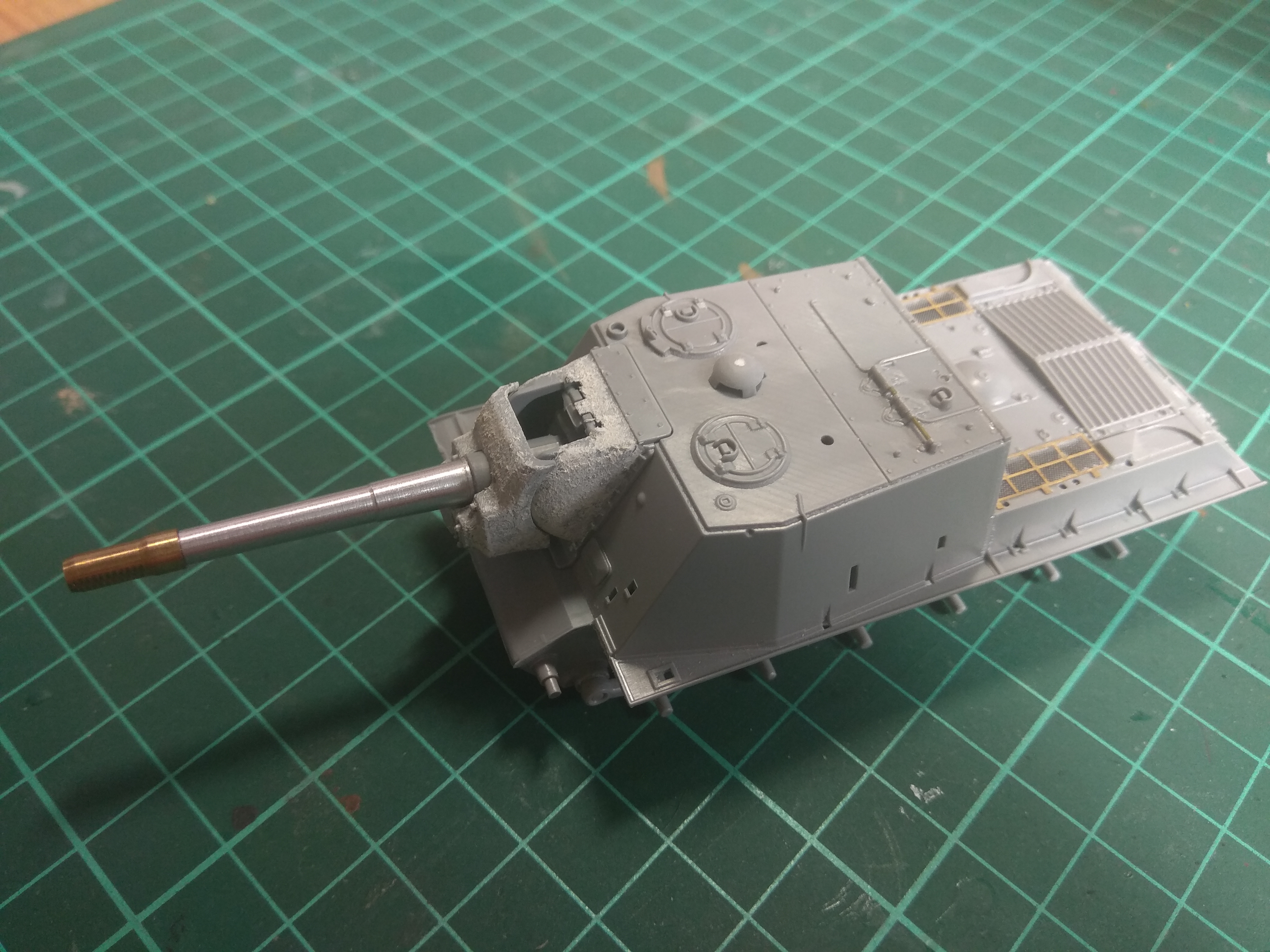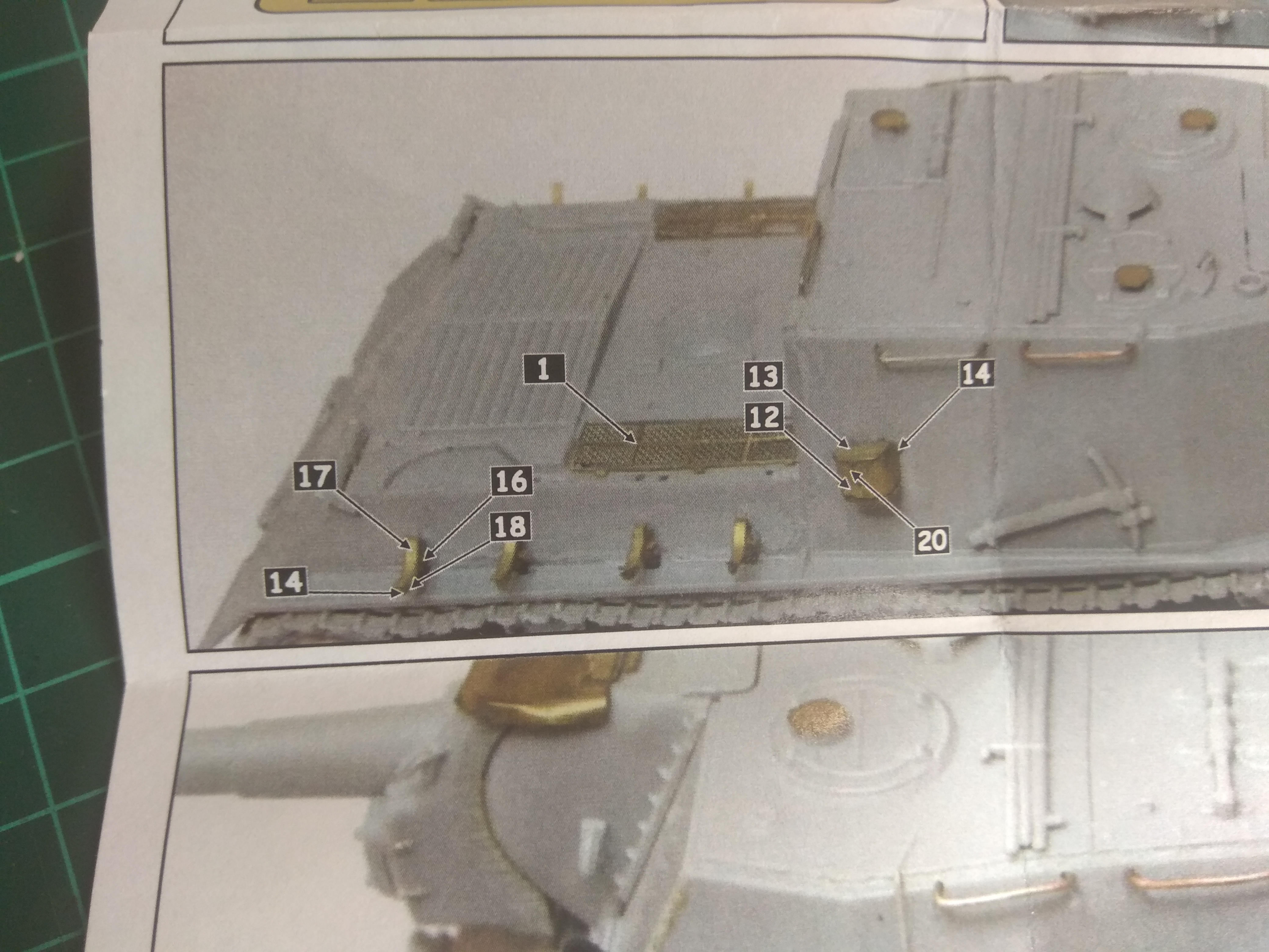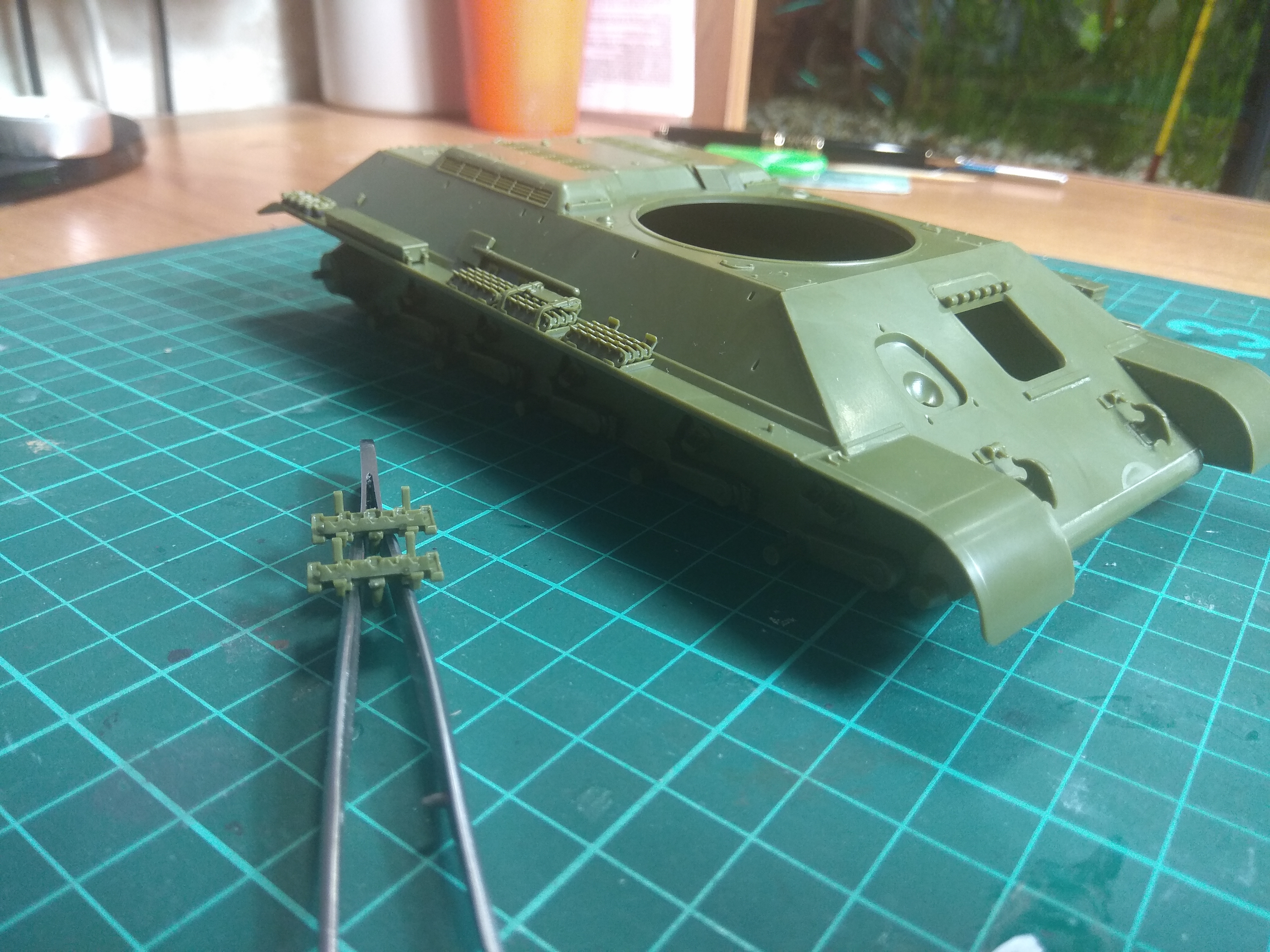Добрый день! Продолжаю стройку ИСУ-152. Как видно, заменил ствол, "изобразил" фактуру литья на маске орудия. Возникла проблема с креплениями для дополнительных баков. Не могу сообразить как они собираются, Может есть у кого фото более подробная?