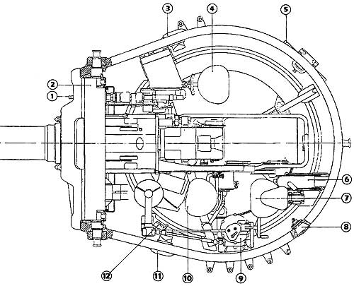 Для наводчика, место 10, в качестве упора для ног, педаль спуска башенного пулемета (с педалью поворотного механизма я ошибся ) и механизм (двигатель?) слева от педали.