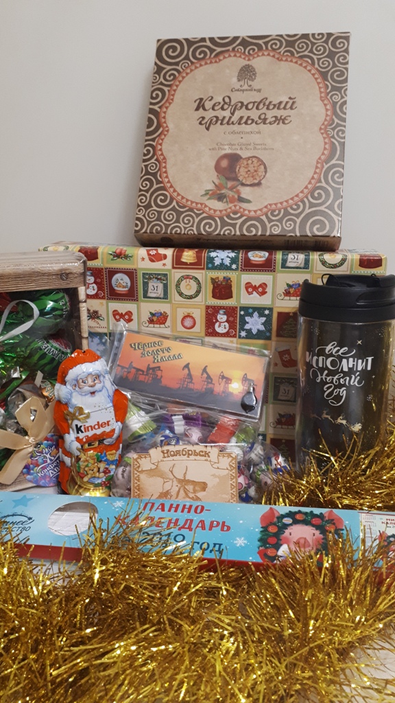 Наконец-то и я собрал подарок своему внучку!!! Долго ждал модельную часть. Раскрывать ее содержимое не буду, так как это абсолютно не профиль внука (но если я правильно понял его второе увлечение, то должно понравится). Традиционный магнитик с нефтью и много-много очень вкусных конфет. А в термокружке черный чай с лимоном и мятой. Завтра накручу хвост почтовым оленям и отправлю внучку!!! )))