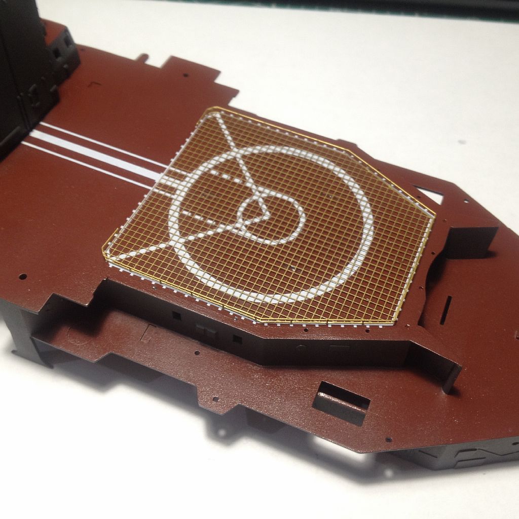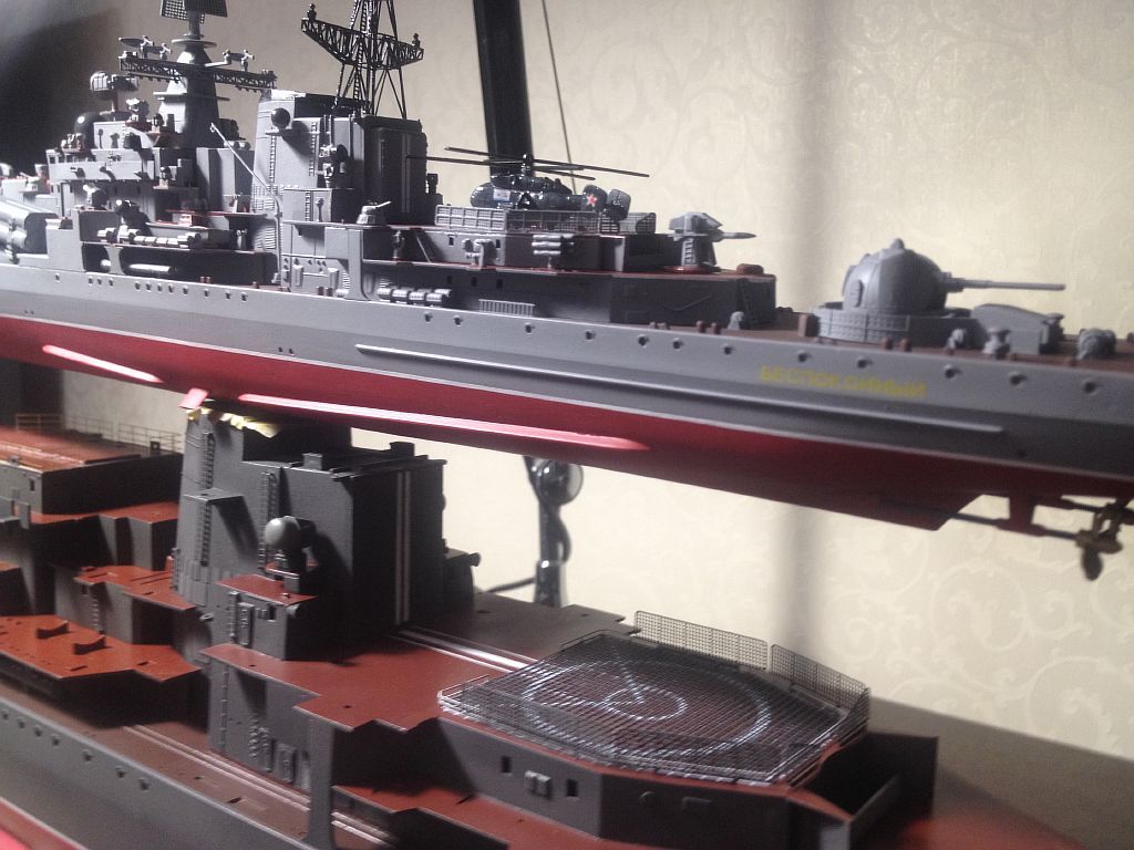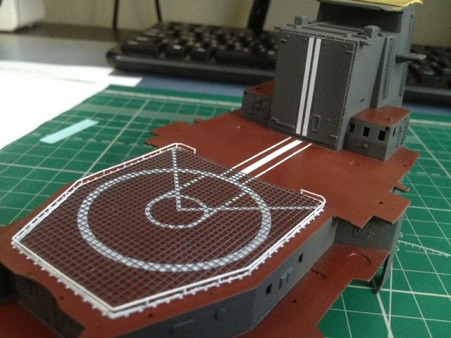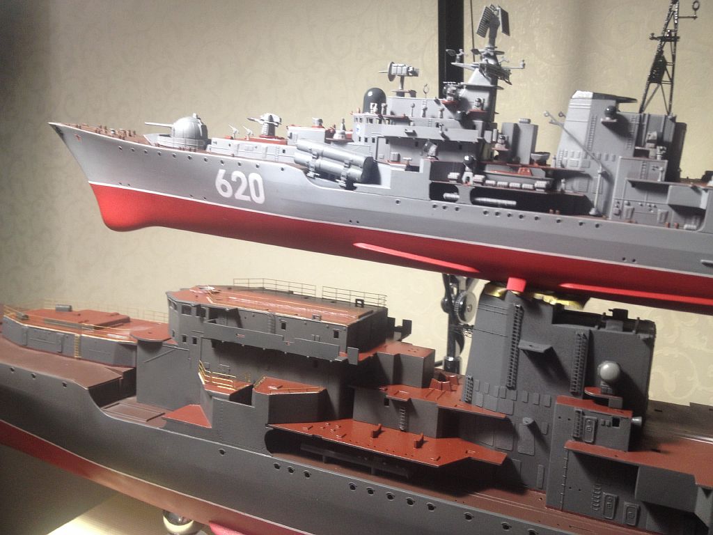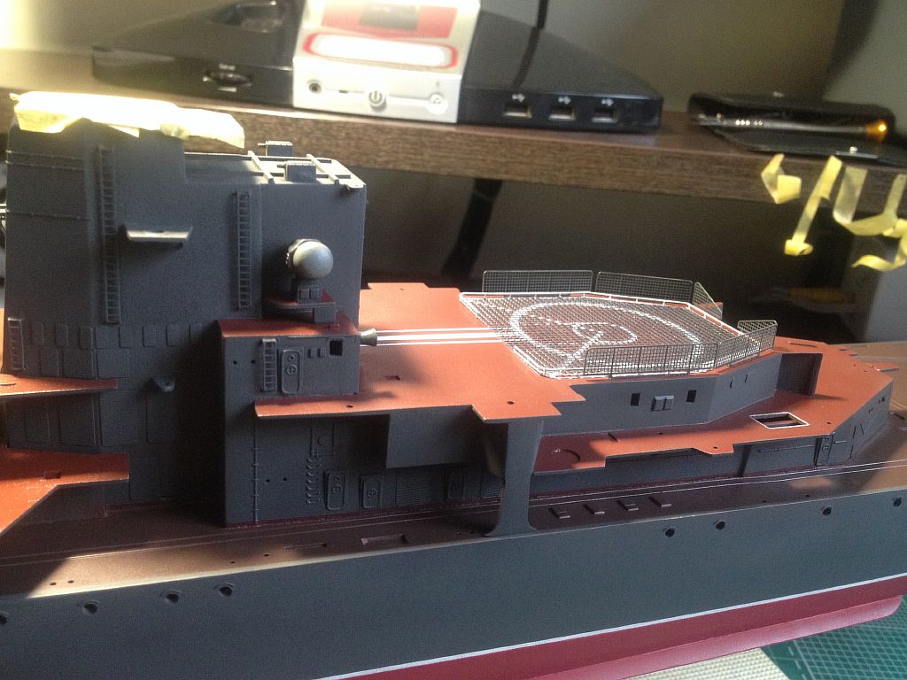 к сожалению объемных фотографий площадки с сетью этих кораблей у меня нет., но есть площадка Орла пр 1135 для КГБ. Там это все хорошо видно и леера с сеткой /на эсминцах принцип тот же/ и саму сеть противоскольжения и можно понять как она крепилась. Вот леер на эсминце Настойчивыйа это Орел....