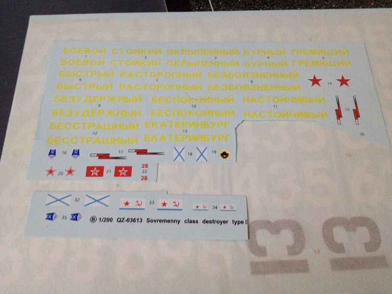 @Дмитрий написал:Добрый день! Вы не могли бы показать здесь фото декалей вашего набора? Мне интересно какие в этом наборе Трумп предлагает к сборке корабли и их бортовые номера.