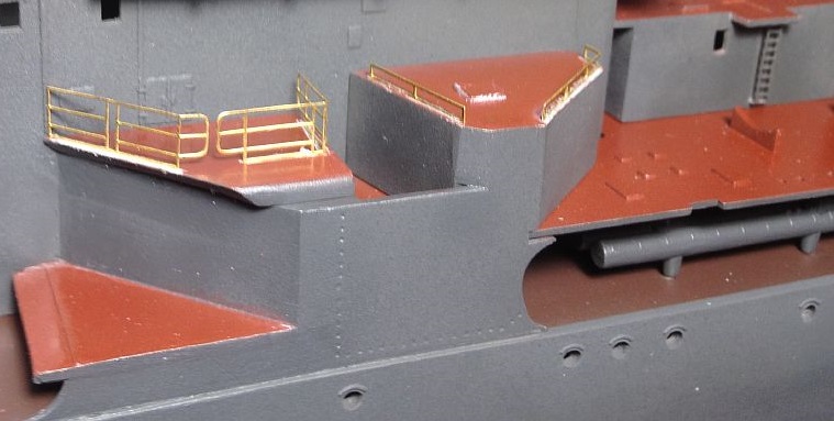 красиво, душевно... по цветовому решению немого не согласен, но это мой взгляд и не более, а в остальном смотрю и замираю от восторга. Аккуратность установки леерного ограждения, скоб трапов и прочего завораживает. Краска на поверхности создает впечатление что деталь изначально была в этом цвете.