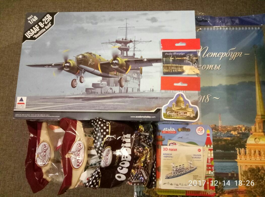 Подарок получен подтверждаю. Фото к сожалению, возможности сделать нет. Спасибо дедушка) правда так и не понял от кого... всё ники ники на каропке) ты хоть это... в личку чтоль напиши) Мне понравилось. Особенно значки!!! А за родной город отдельное спасибо! Книга с такими фото как бальзам на душу) супер вообщем!