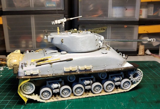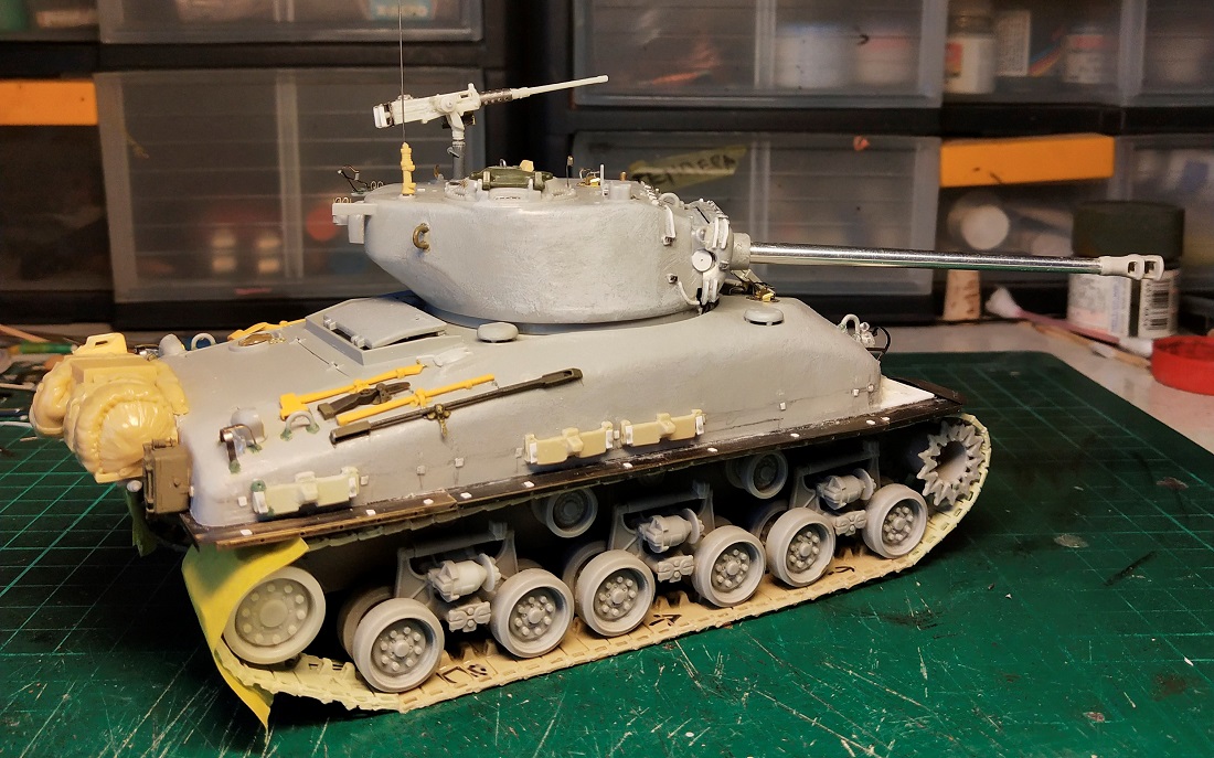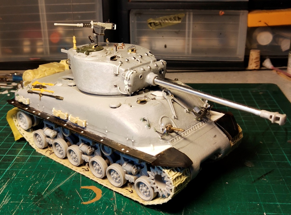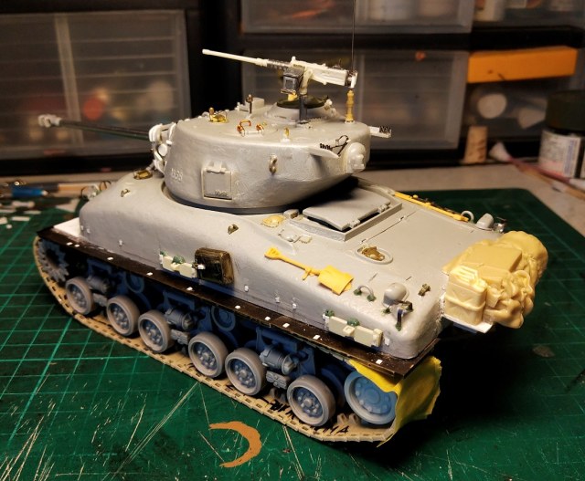 Если ещё не начали красить - обратите внимание на сварные швы. Их по корпусу очень много, и они довольно заметны. Более того: "Тамия" даёт их эдакими "канавками", а они должны выступать над поверхностью. Литьевые номера тоже добавят шарма: у танка немало литых деталей. В ограждениях заливных горловин, вентилятора, в отбойнике на корпусе и в стакане антенного ввода необходимо выполнить дренажные отверстия. В общем, мелочей там хватает, было бы желание ими заниматься