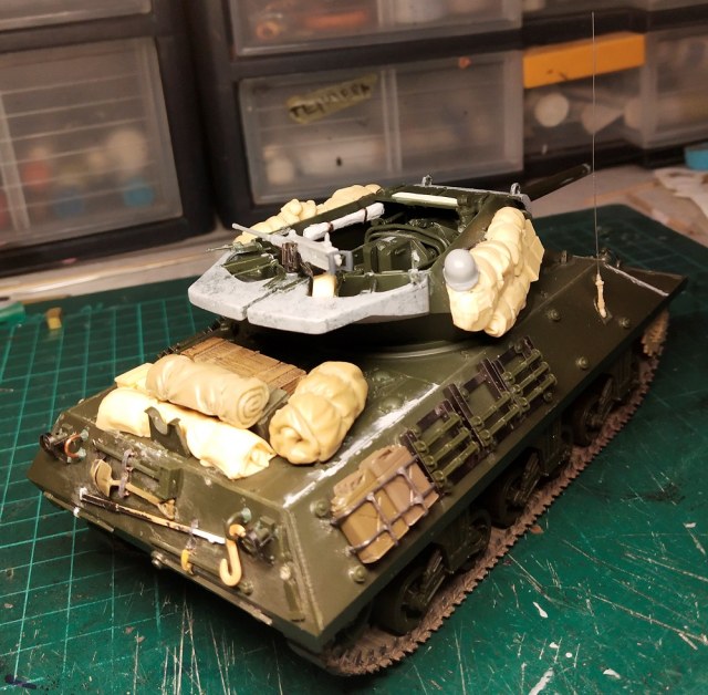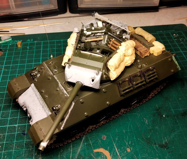 Смотровые блоки в командирской башенке вырезать совсем не обязательно. Чёрный матовый (или Smoke от Tamya) + лак =- вполне похоже.