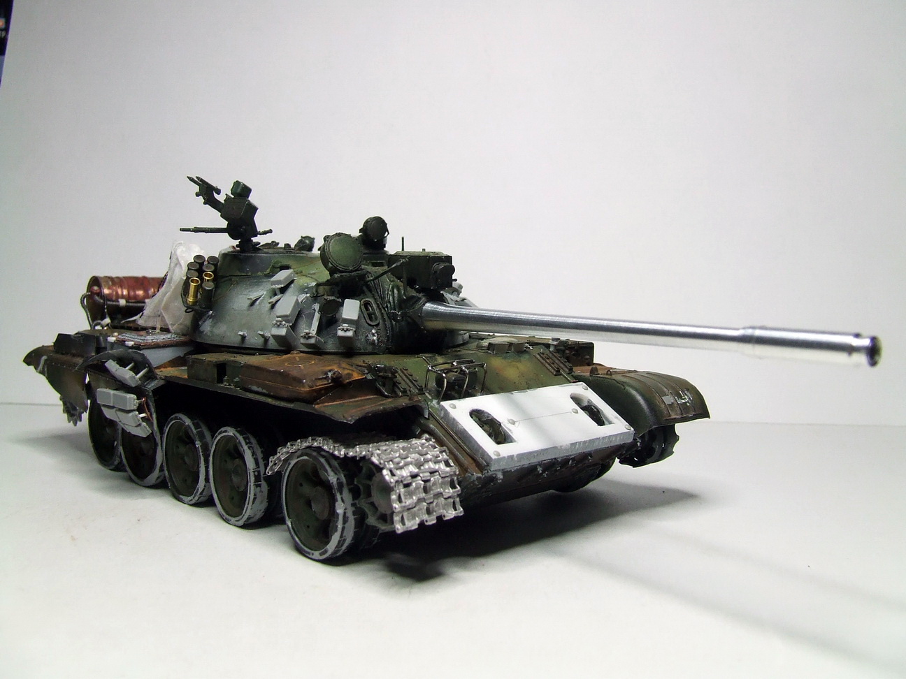 Переделка старой модели Т-55, которую я запорол, и стараюсь исправить) Первое фото- до. остальные после.