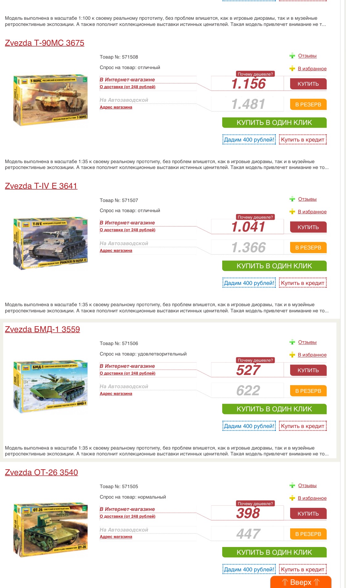 В pleer.ru сейчас самые низкие цены на модели Звезды, ещё в распродаже модели Dragon, Italeri, HobbyBoss, Airfix, Miniart.