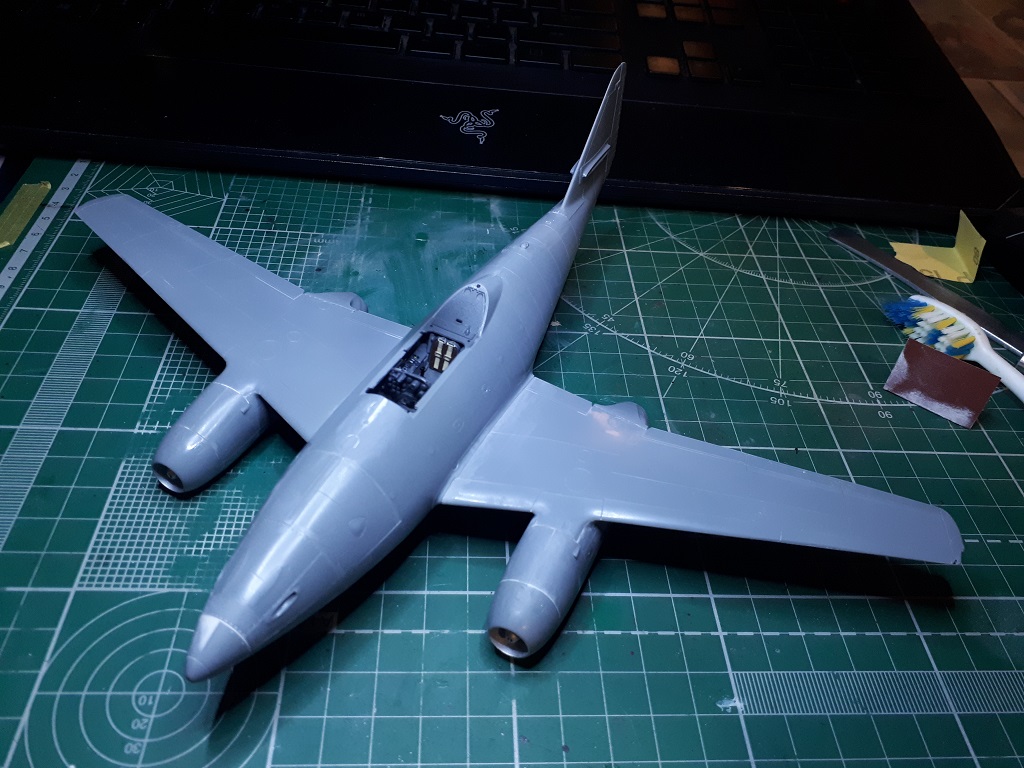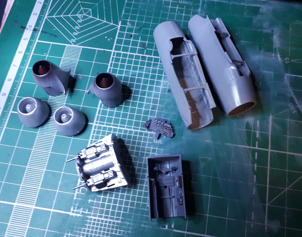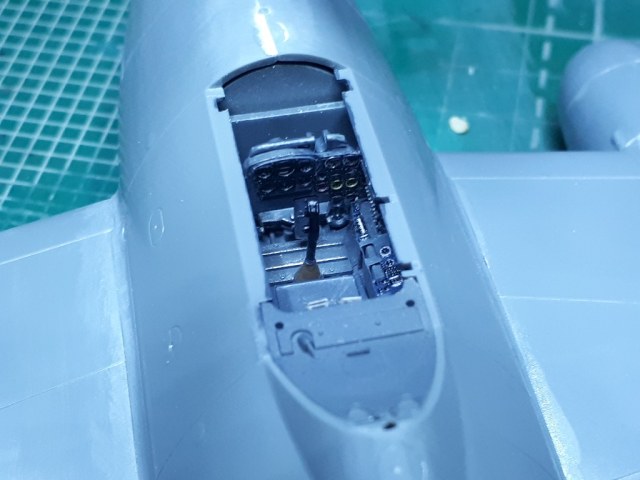 Как то незаметно приблизились сроки нашей региональной выставки и пришлось активизироваться. Склеил крупные детали (быстро), впереди шпаклевка и дорезка швов (это обычно долго). Подготовил части фонаря к покраске переплета изнутри. Привязные ремни снизу подрезал, чтоб не мешали усадить пилота (он будет не пристегнут).
