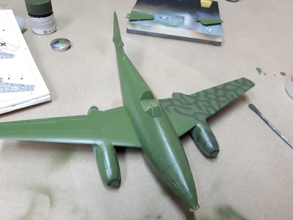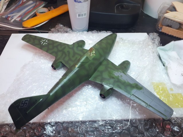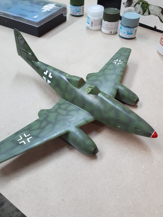 В общем, смыл крылья, снова красил, покрыл на этот раз гюнзовским лаком и надул по трафаретам белые кресты. Нервотрепно получилось... Окончательный вид (носик тоже крашенный)