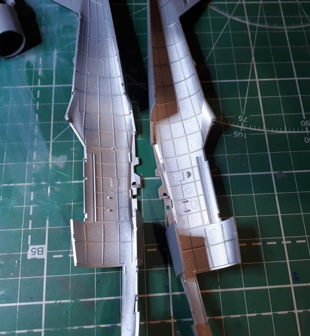 Это обычный тамиевский "матовый алюминий" XF16 и он действительно весьма матовый (ещё и очень зернистый, надо искать какую нибудь замену с мелким зерном), просто настольная лампа довольно близко и дает сильный блик...