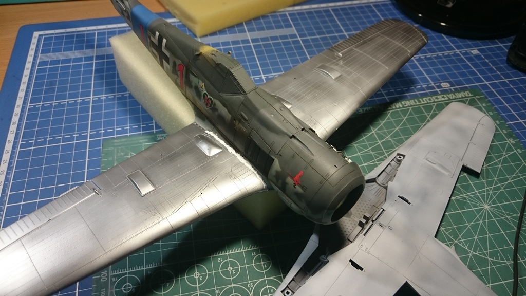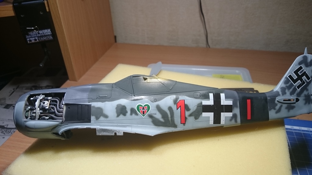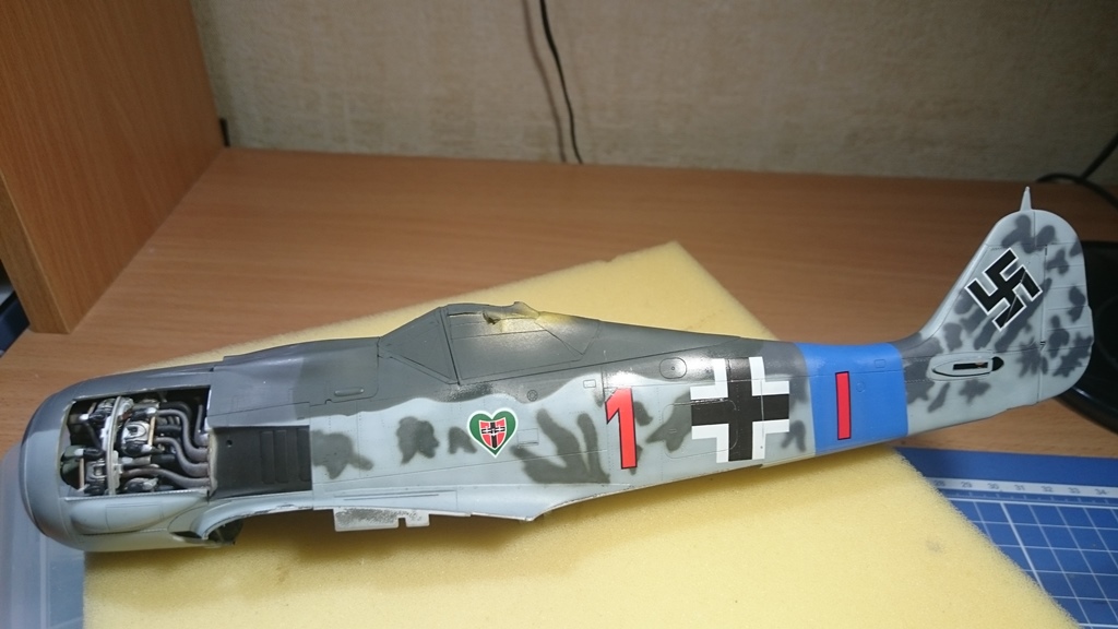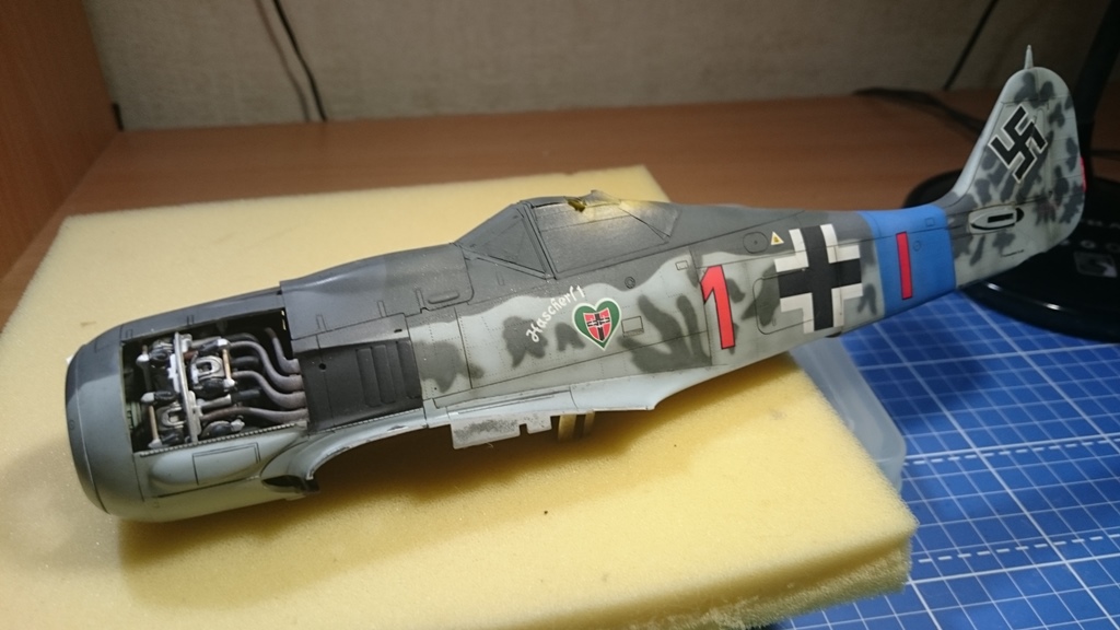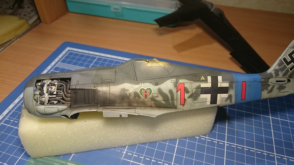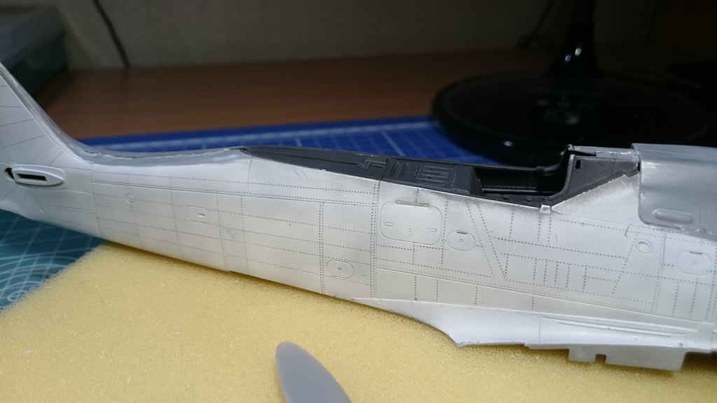 В тушку) попытался вживить двигатель от набора Fw-190 1\32 Revell, вот что получилось, ну и заодно проклепал фюзеляж.