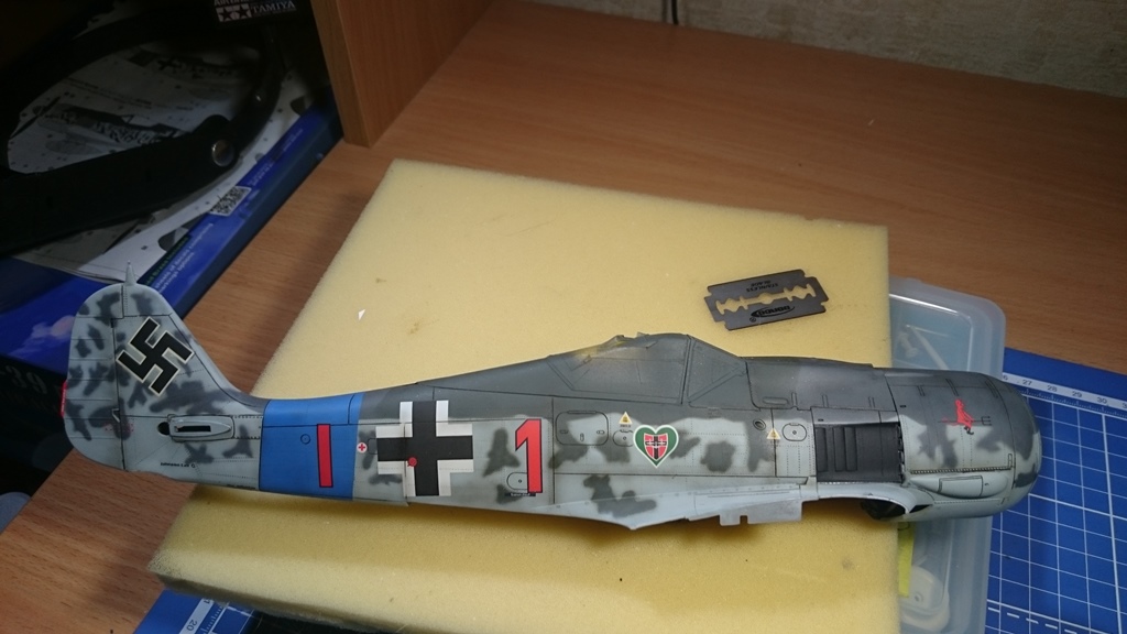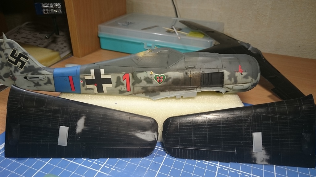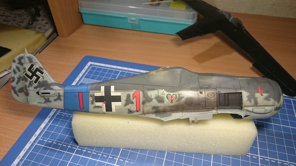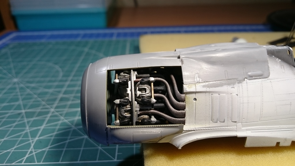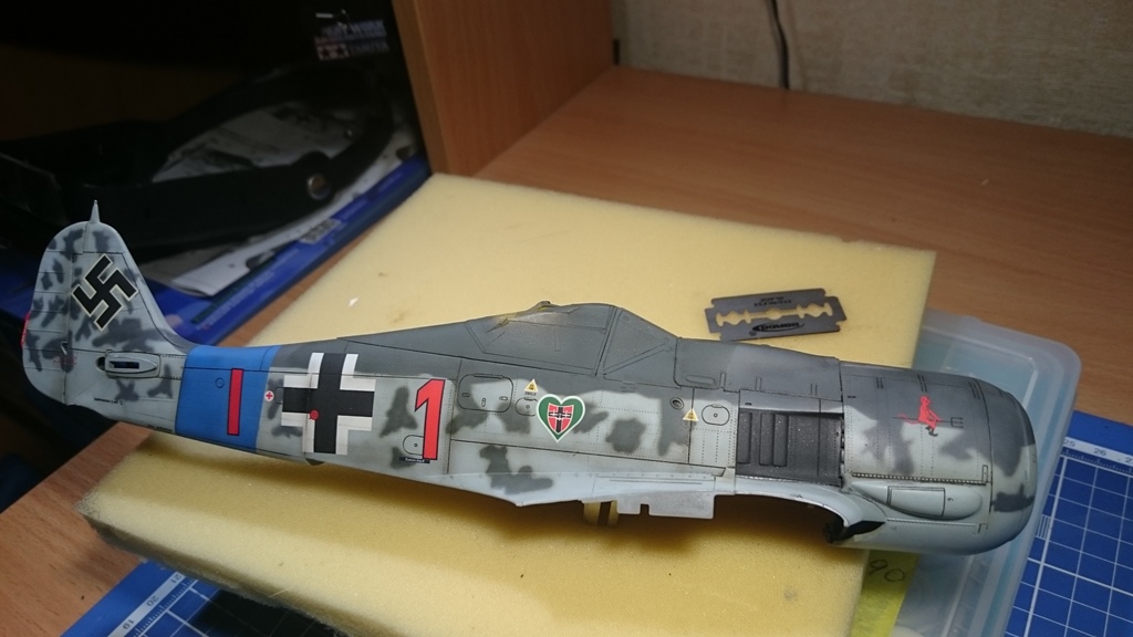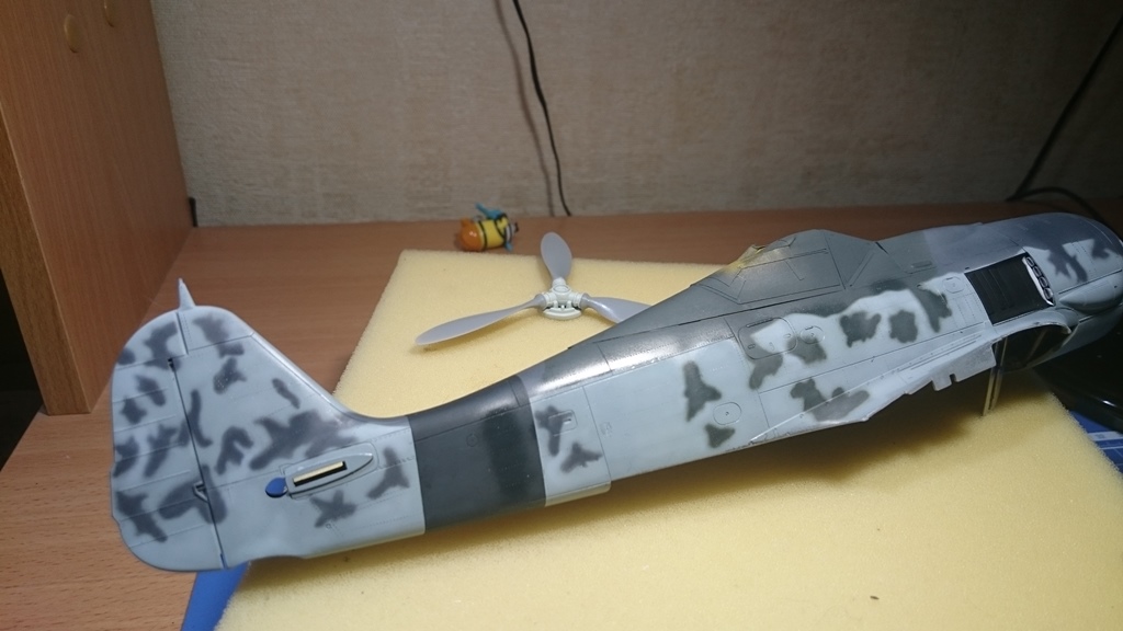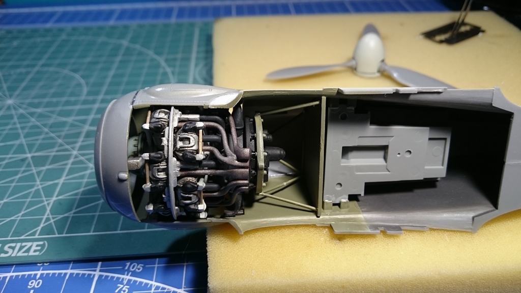В тушку) попытался вживить двигатель от набора Fw-190 1\32 Revell, вот что получилось, ну и заодно проклепал фюзеляж.