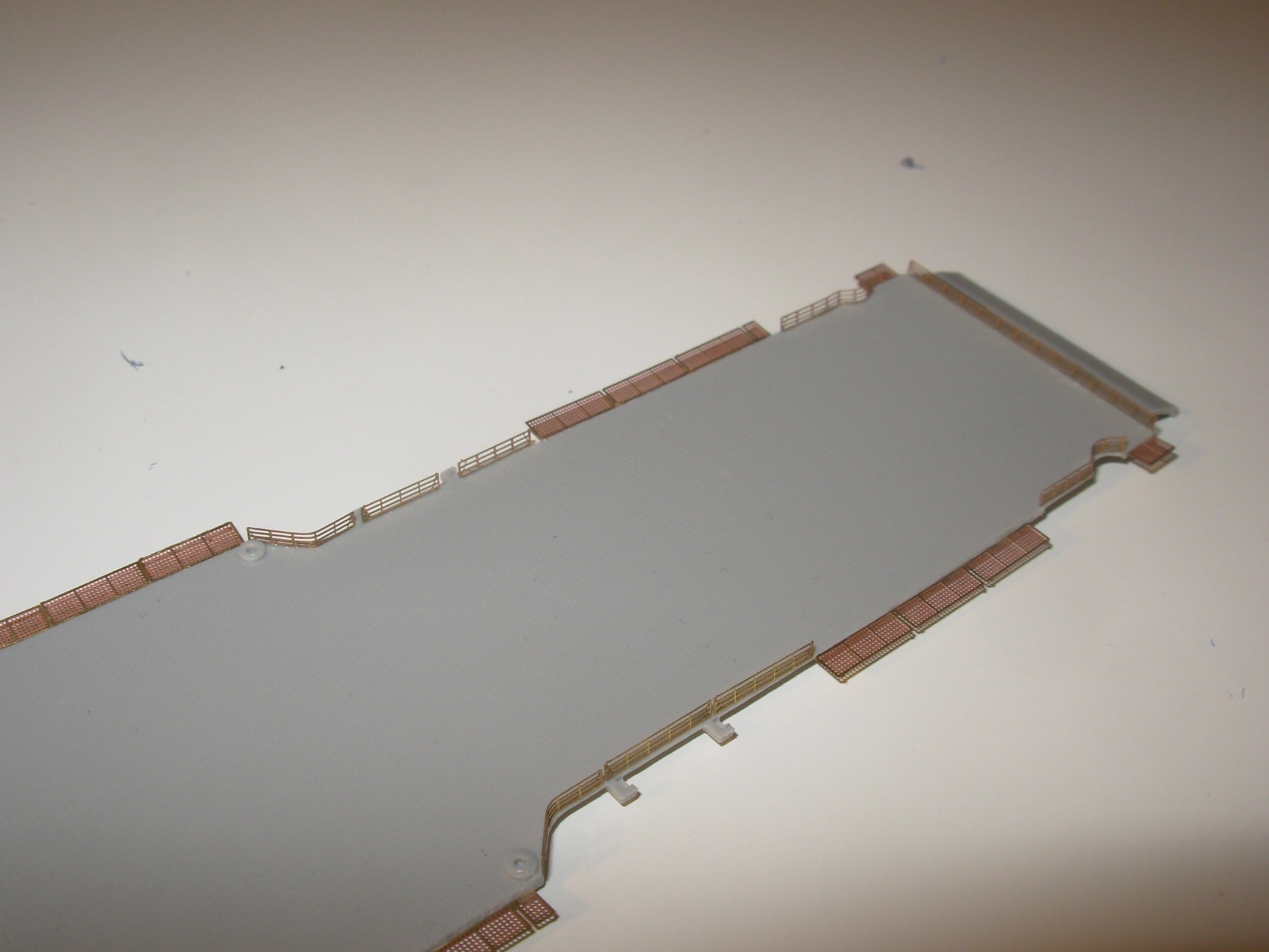 - корпус с палубой собираем вместе, устанавливаем спонсоны для зениток и балконы для плавсредств. если надо шпаклюем щели. все это окрашиваем в сборе