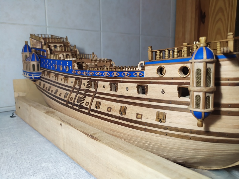 Всем привет. Осенне-полевые работы плюс основная немного отодвинули постройку. Сейчас самое время наверстывать. Пока имеем пушечные порты и наклеил планшири. Примеряю галерею