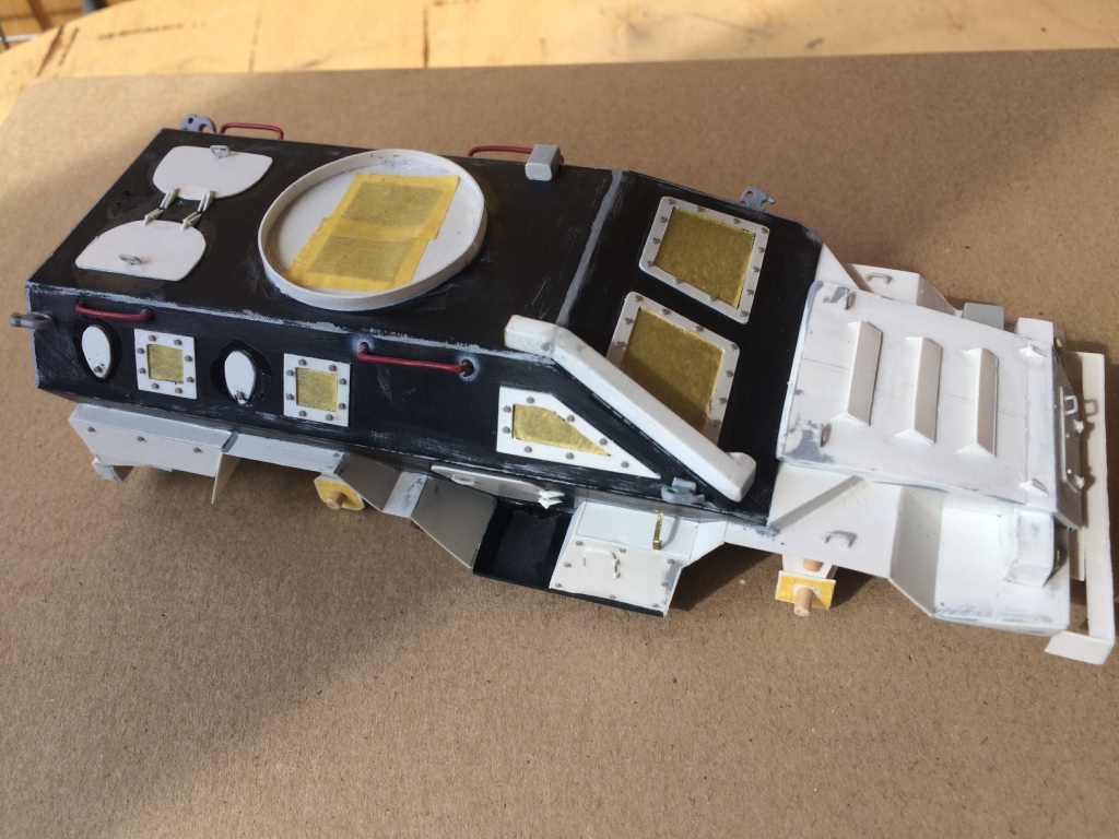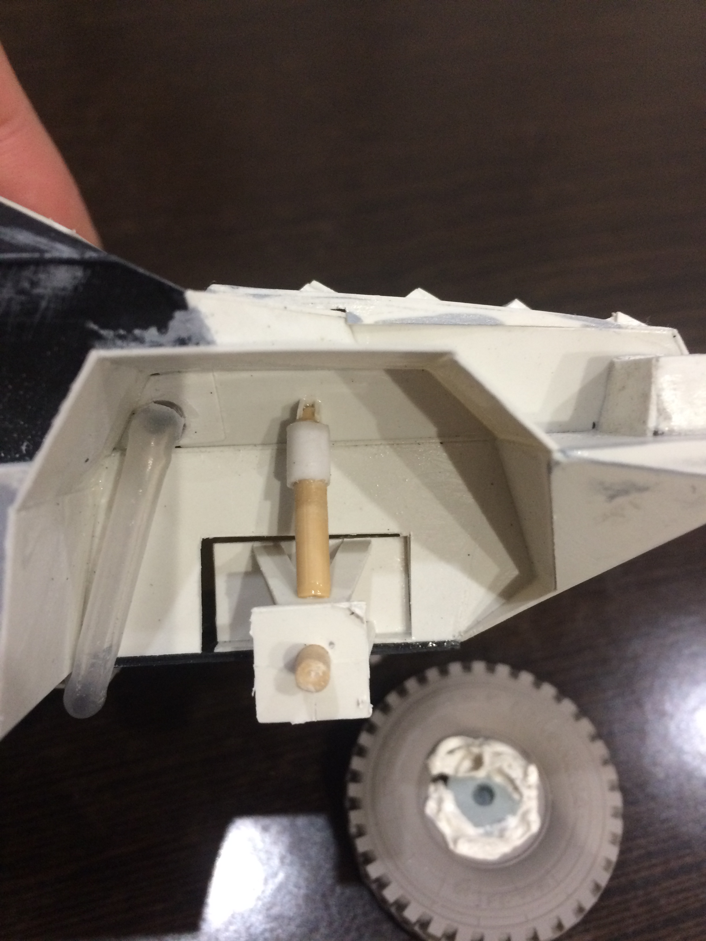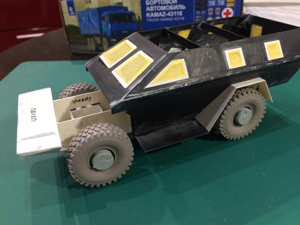 Стройка была временно приостановлена из-за большого количества работы на работе, которая плавно переползла домой. По этой причине, а также чтобы побыстрее закончить модель, многие моменты решил опустить (фильтры воздуха, лебедка). Доделал всякие ручки, поручни, клепки. В данный момент модель загрунтовал, немного поработаю шкуркой и шпаклей и буду красить.