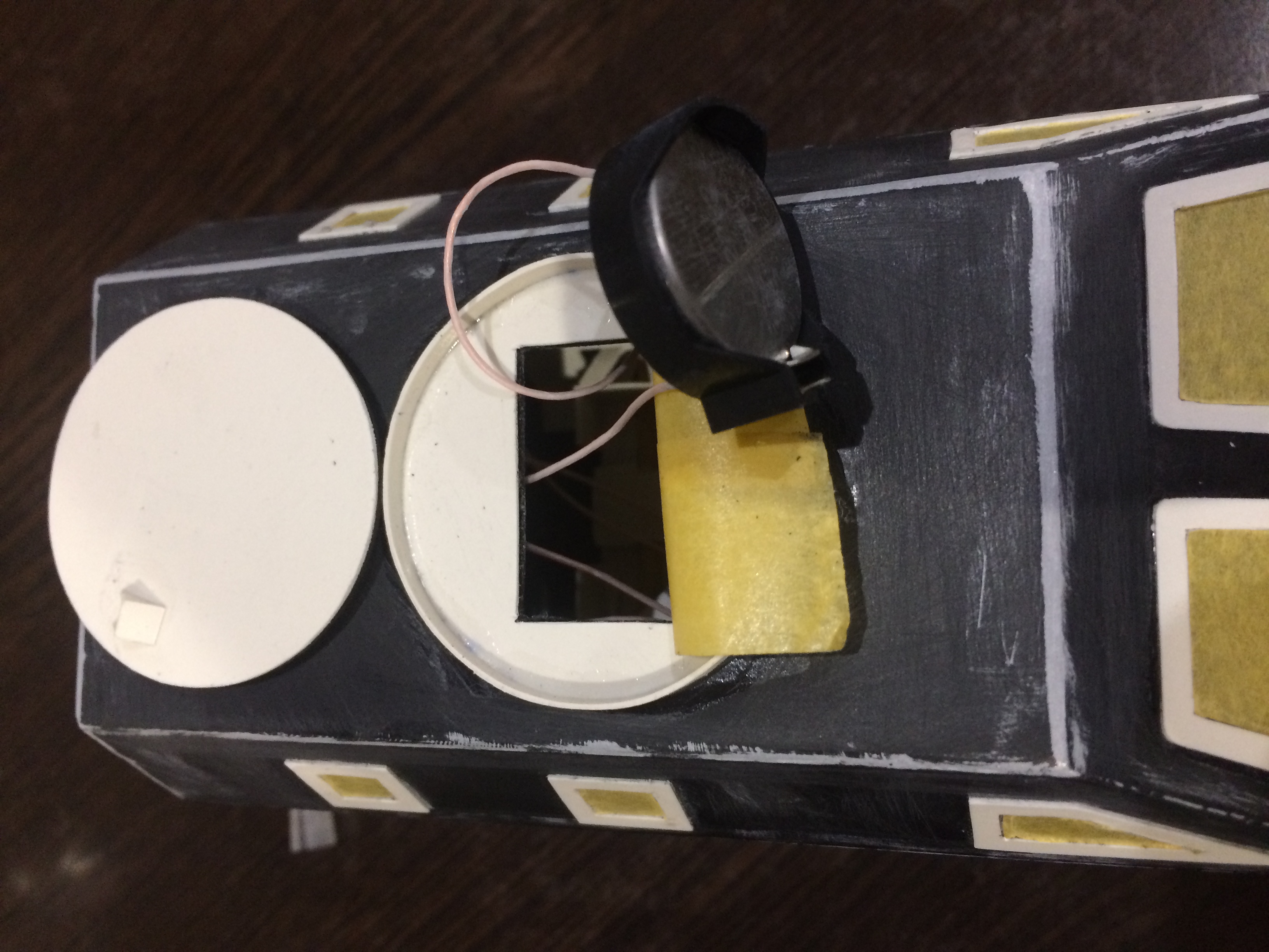 позанимался электрикой. Доделал правую фару. Установил батарейку на 3В, поставил переключатель. Паяльником немного повело заднюю стенку, но думаю не страшно, шпаклей выведу