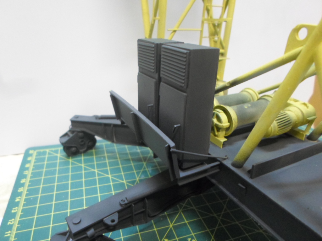 А по отверстиям в раме: зачем так глубоко заходить?, толщина пластика там не масштабная, они ничего не дадут. Дальше по деталировке: если вы так выполнили лебёдку, тогда может есть смысл дополнить машину кран-балкой? CF её делает, кстати.