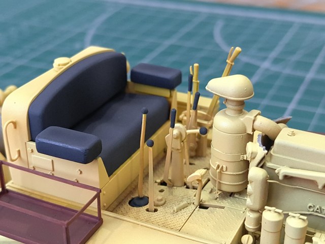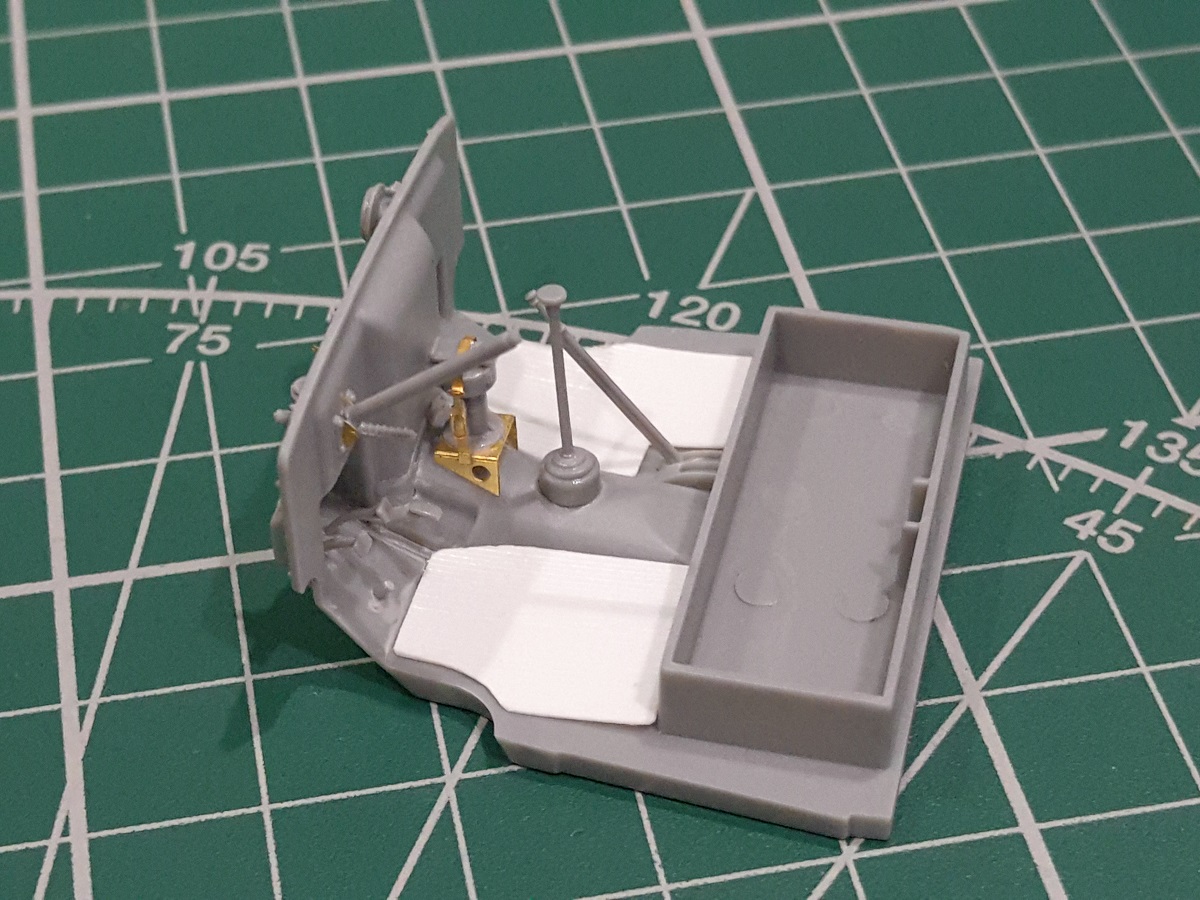 Вырезал коврики в кабину. Скрайбером имитировал рифление на них (на неокрашенных видно плохо).