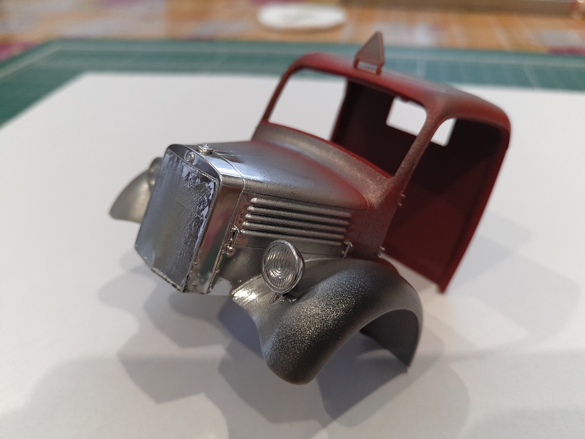 Собрал кабину и капот с решеткой радиатора.