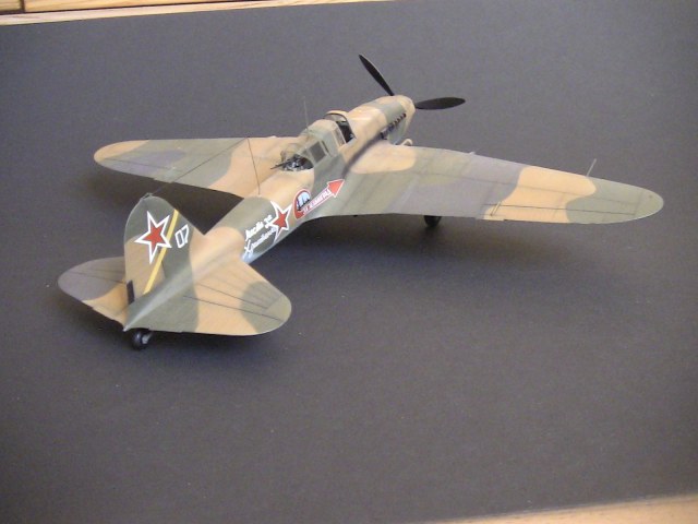 Вот по поводу цвета АМТ-1 можно подискутировать. Приказ, который Вы привели в комментарии я как раз читал непосредственно перед началом окраски самолета. И есть там такой обзац, в котором говорится, что допускается отступление от цветов, указанных в схемах, если тип местности отличается по оттенку и разрешается красить непосредственно в тон местности. Получается что светлые пятна на моем самолете, вовсе не АМТ-1(светло-коричневый), а Песочный. Да плюс еще и оттенок мог гулять от партии к партии, но это конечно не значительно. И еще цветопередача фотографии - в реальности эти пятна на модели чуть-чуть бледней, совсем незначительно, но бледней и хорошо перекликаются с грунтом на подставке.
