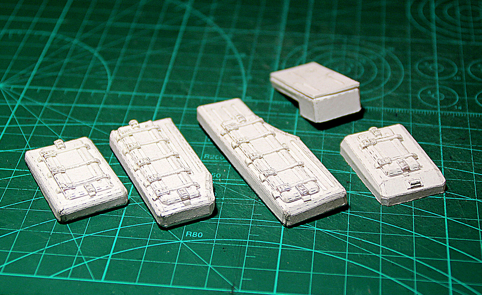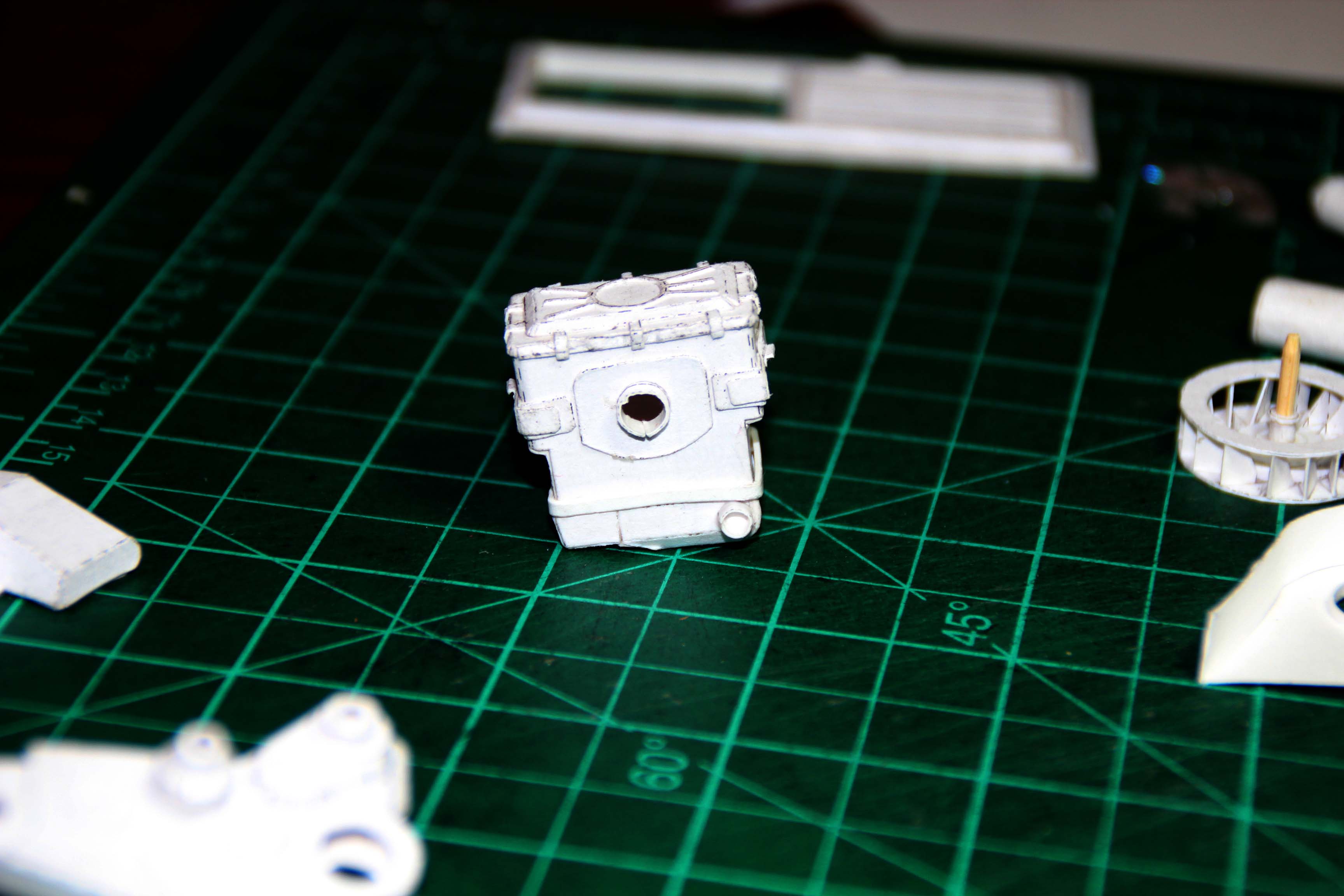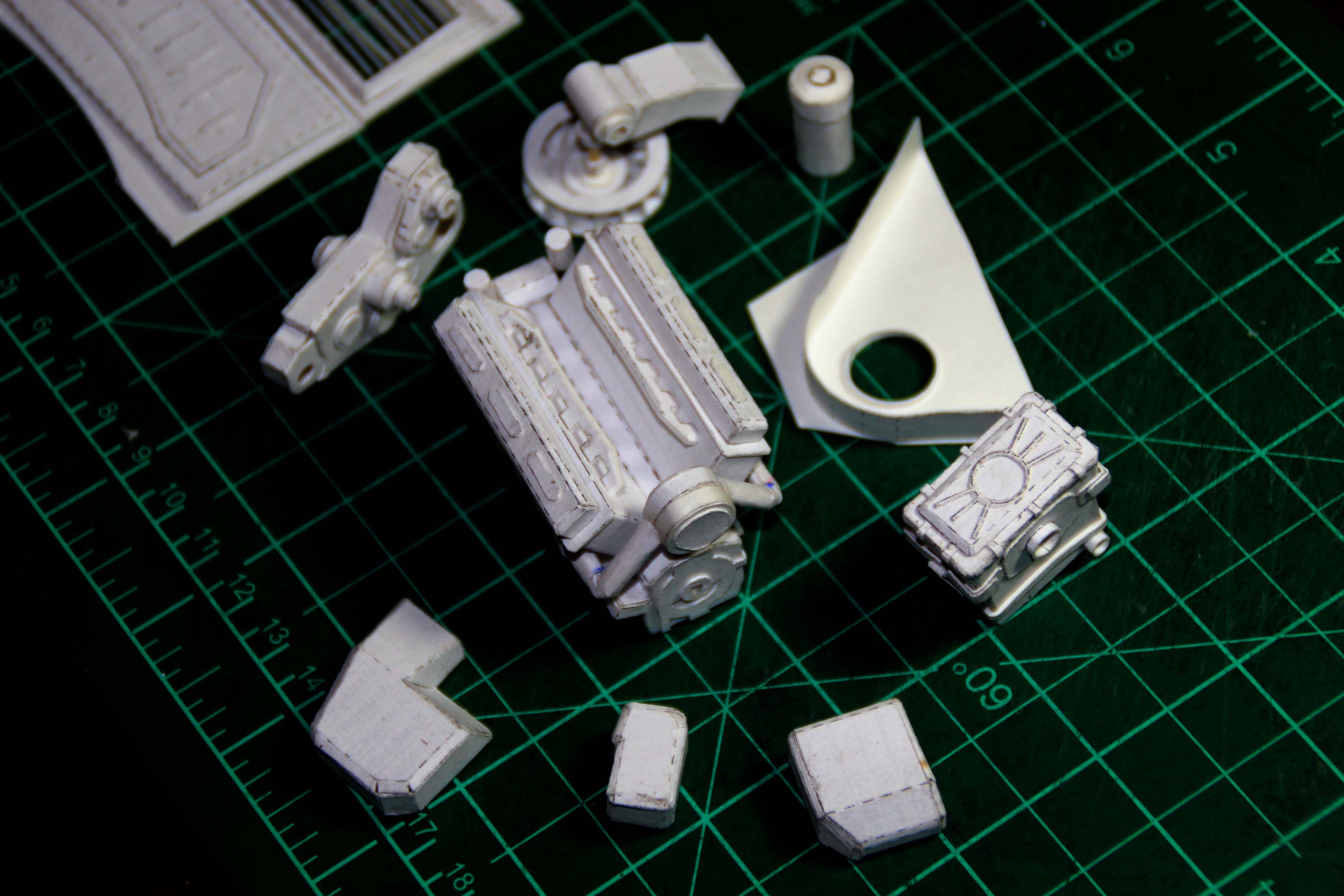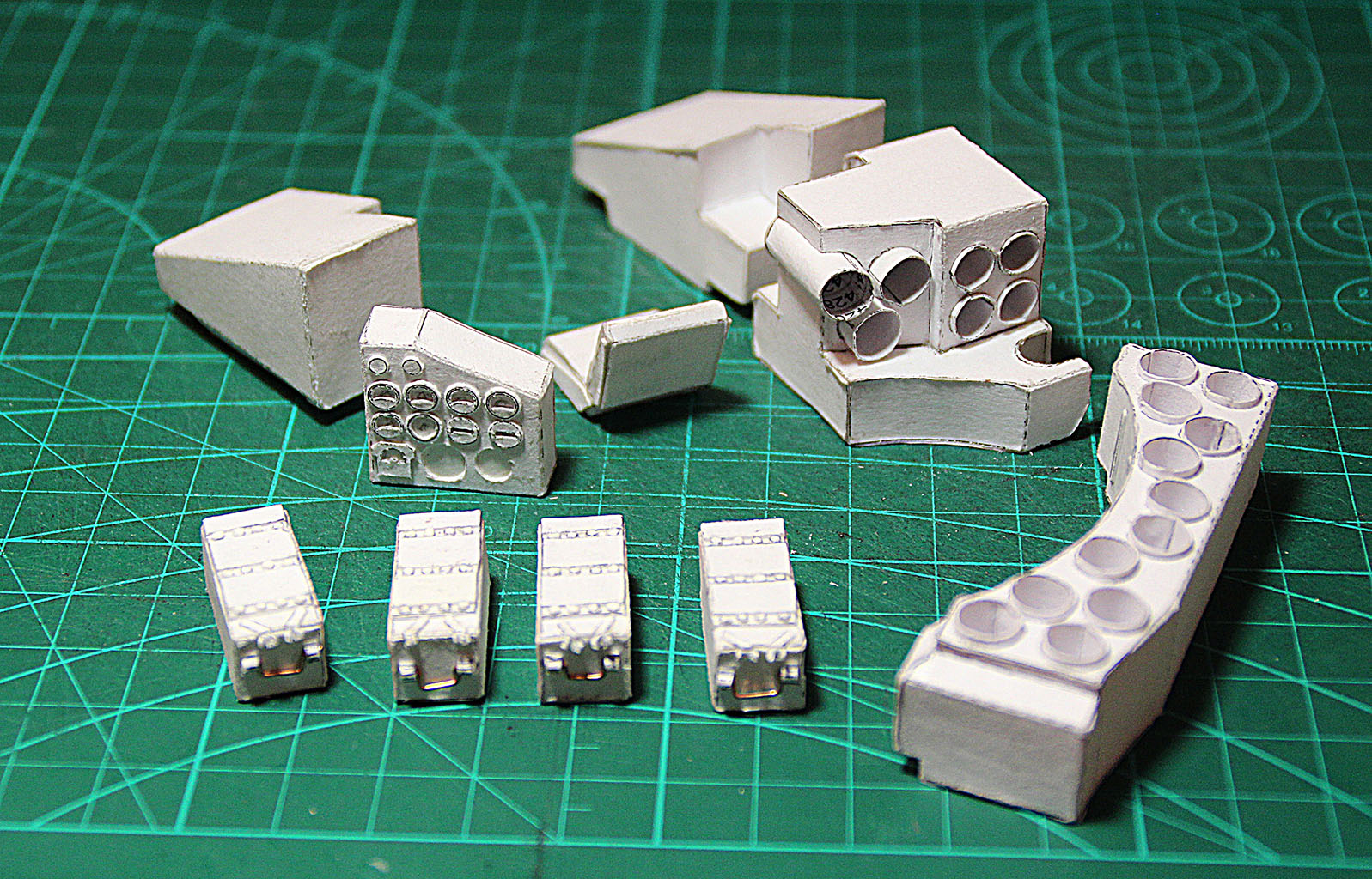 вообщем детали проектируется, разворачиваются и клеются в основном штучно: замоделил, развернул, склеил. если выявились несхождения или неудобства - тут же переделываю, пока свежо в памяти.