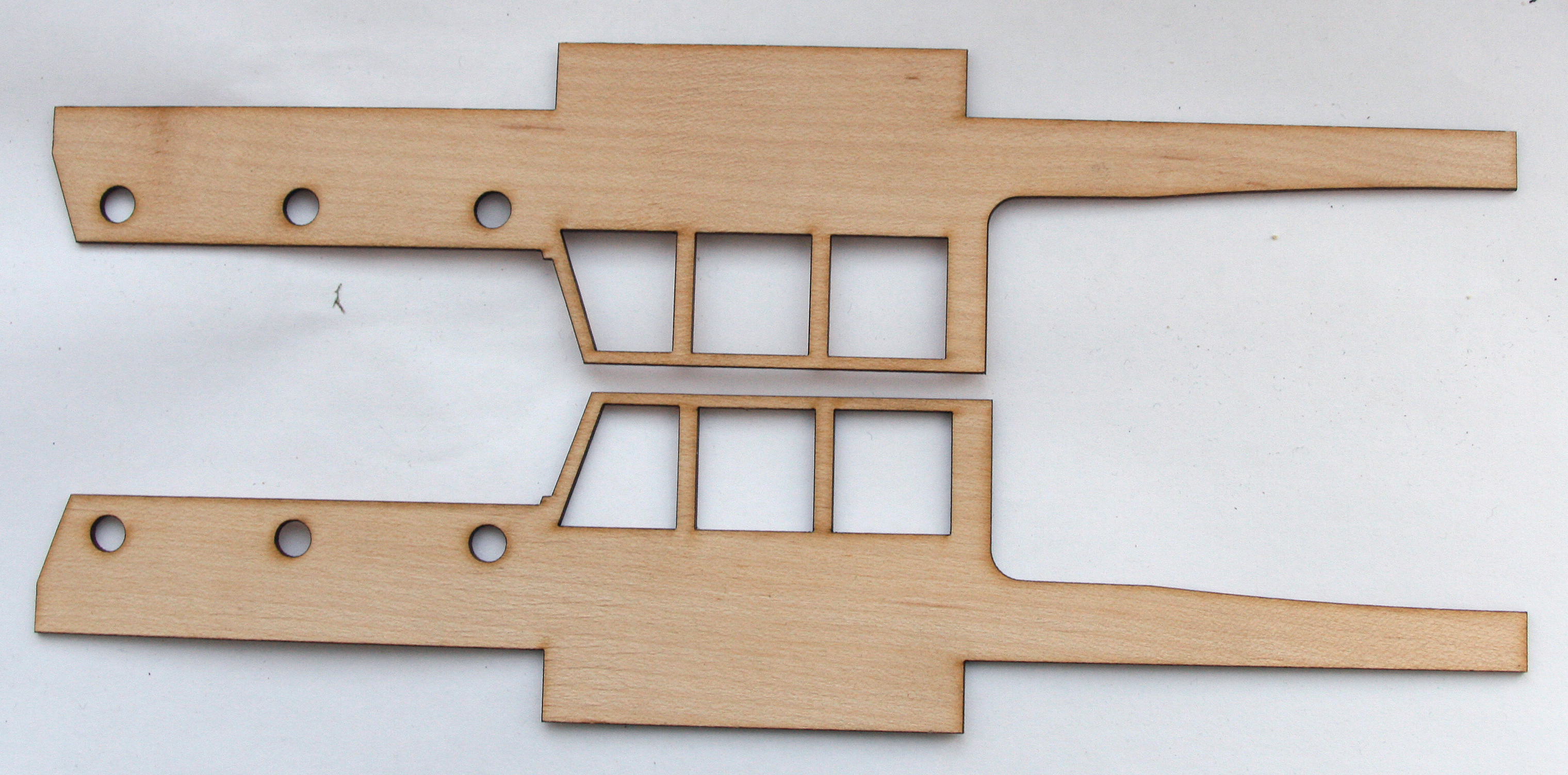 Обшивка двойная из шпона. палубы из массива клена. Все вырезано лазером, включая раскроенную обшивку.