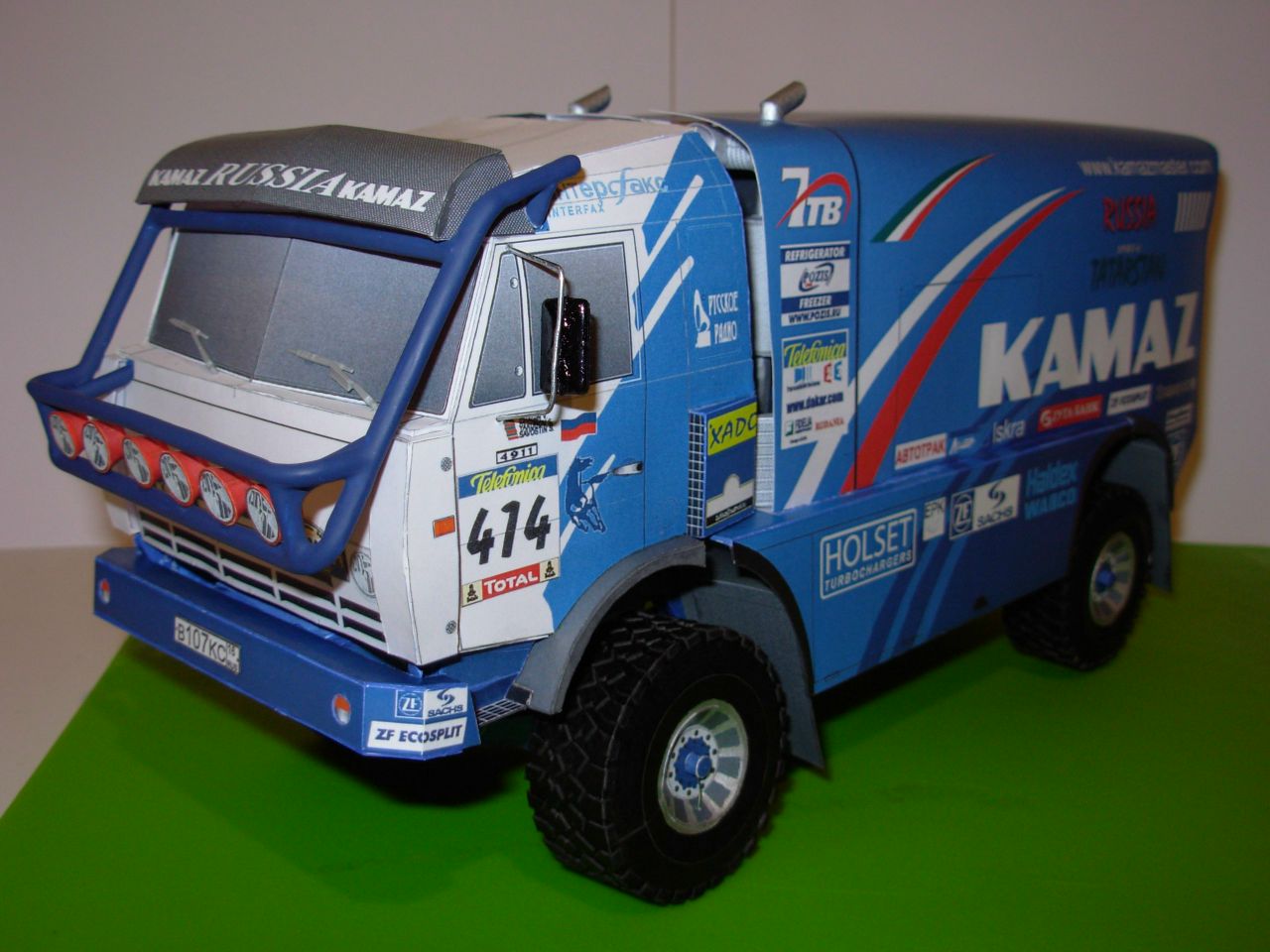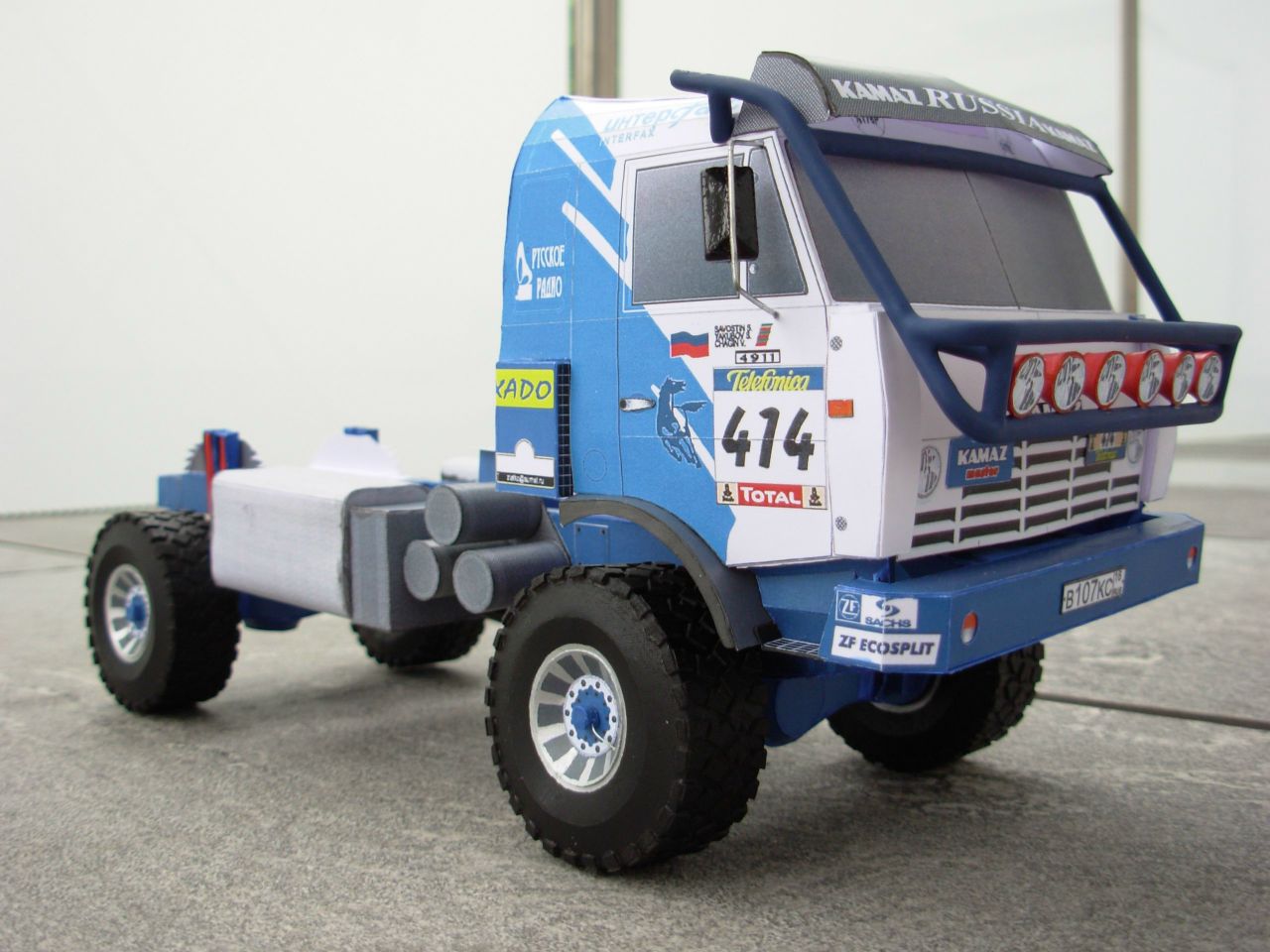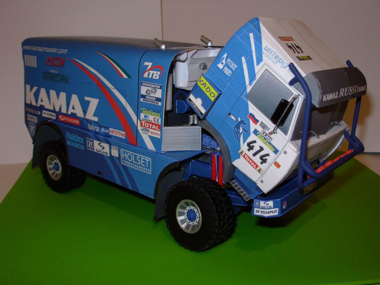 Вот и закончил свою первую работу в таком хобби как Бумажное Моделирование. Сборку модели закончил,позже будем оформлять на подставке имитирующаю песчаную трассу. Камаз 4911, номер 414, экипаж Владимира Чагина. Выступал этот автомобиль в 2004 году. Сама модель очень понравилась,но не понравилась инструкция к ней. Конечно для меня как новечка это было тяжело,но преодалимо. Конечно же без косяков не обошлось никак. В общем табуретки и помидоры в студию.
