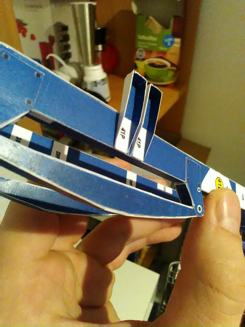 Теперь в этой модели передние колеса поворачиваются,все укреплял как мог клеями, и реактивные тяги пришлось делать самому из тонкой бумаги,внутри зубочистка для надежности. Далее будем проводить сборку задней подвески и всего остального на раму.