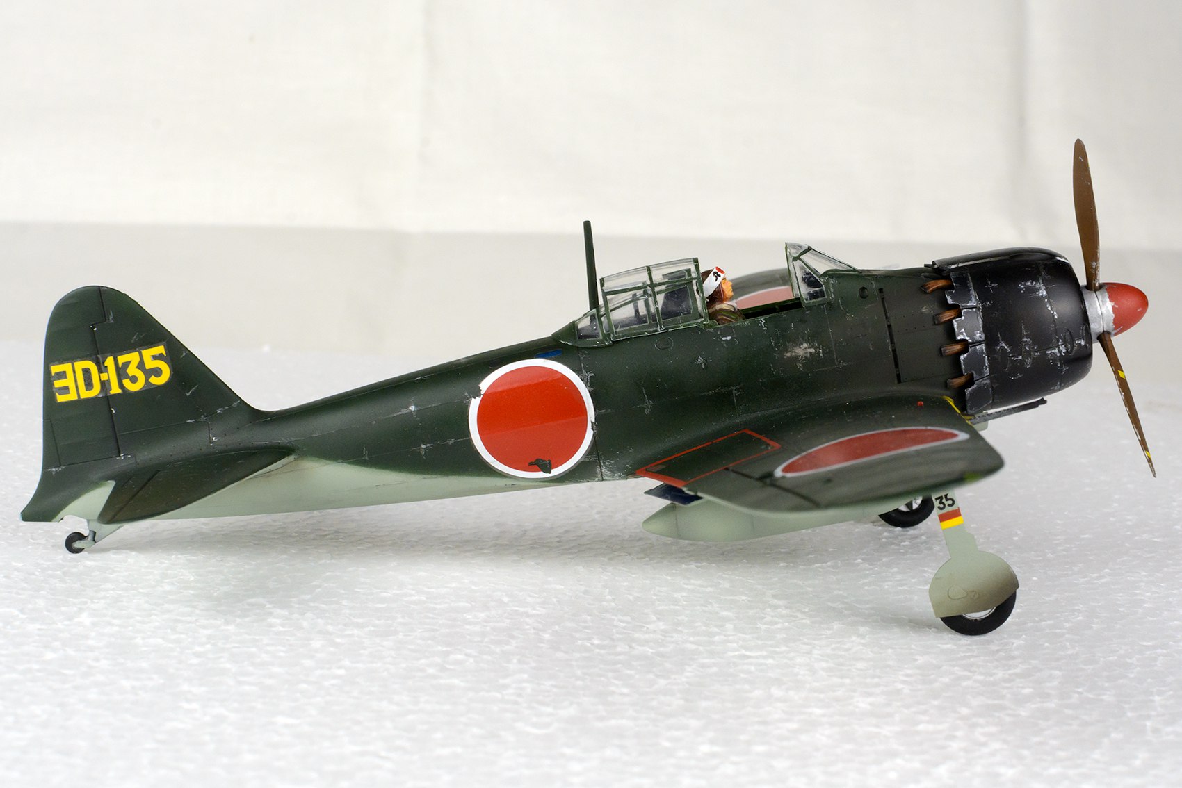 Ну во-первых дальше в планах тамиевский "мустанг", поэтому практикуюсь лишний раз в нанесении металликов. Опробовал новый для меня способ. Ранее собрал мустанг от итальери в 1/72, там не совсем этот металлик задался. Почему бы и не набить руку. Ну и во-вторых у японцев судя по всему с краской была какая-то беда и в условиях тихоокеанского климата и солености она лупилась на самолетах очень бодро и по многу. Я планирую имитировать это содрав зубочисткой базовый зеленый до металлика. Можно конечно кисточкой нанести металлик на базу, но я решил убить двух зайцев сразу и опробовать такой метод старения) Он вроде как если все аккуратно сделать выигрывает по виду у ручного нанесения потертостей. Краски, кстати, что черной, что алюминиевой потребовалось совсем мало)bek пишет:а зачем тратить столько дорогой краски - черной и алюминиевой, если модель будет зеленой?