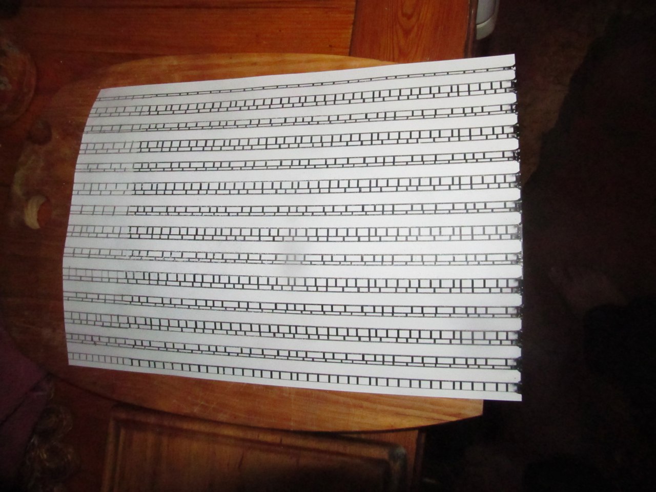 на принтере печатаем полоски - потом ножом вырезаем две из полосы кирпичиков со сплошной полосой в центре - между которыми легкий надрез для сгиба по всей длине - потом ножницами вырезаем каждый кирпичик поперек с щелью(милимитровые кусочки выкидываем) - потом клеем - на сплошную часть кирпичики загибаем - получаем двойную полосу кирпичей - пока сырые сразу клеим - стена/дорога - там по изгибу все ложится отлично - потом следующий рядок...... - фото принта и полос с загнутыми кирпичиками , атакже готовой стены приложил
