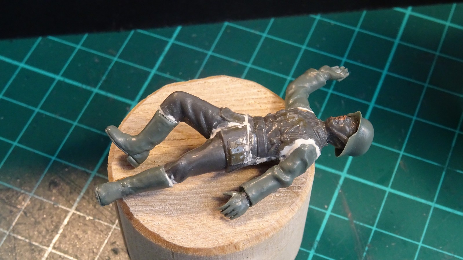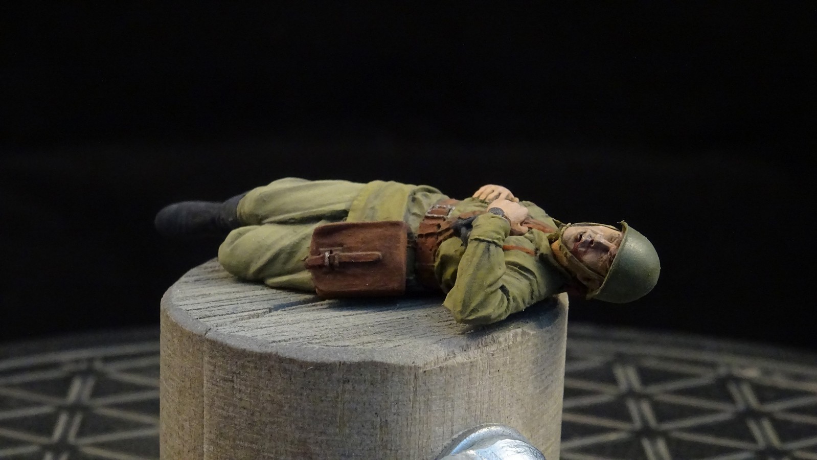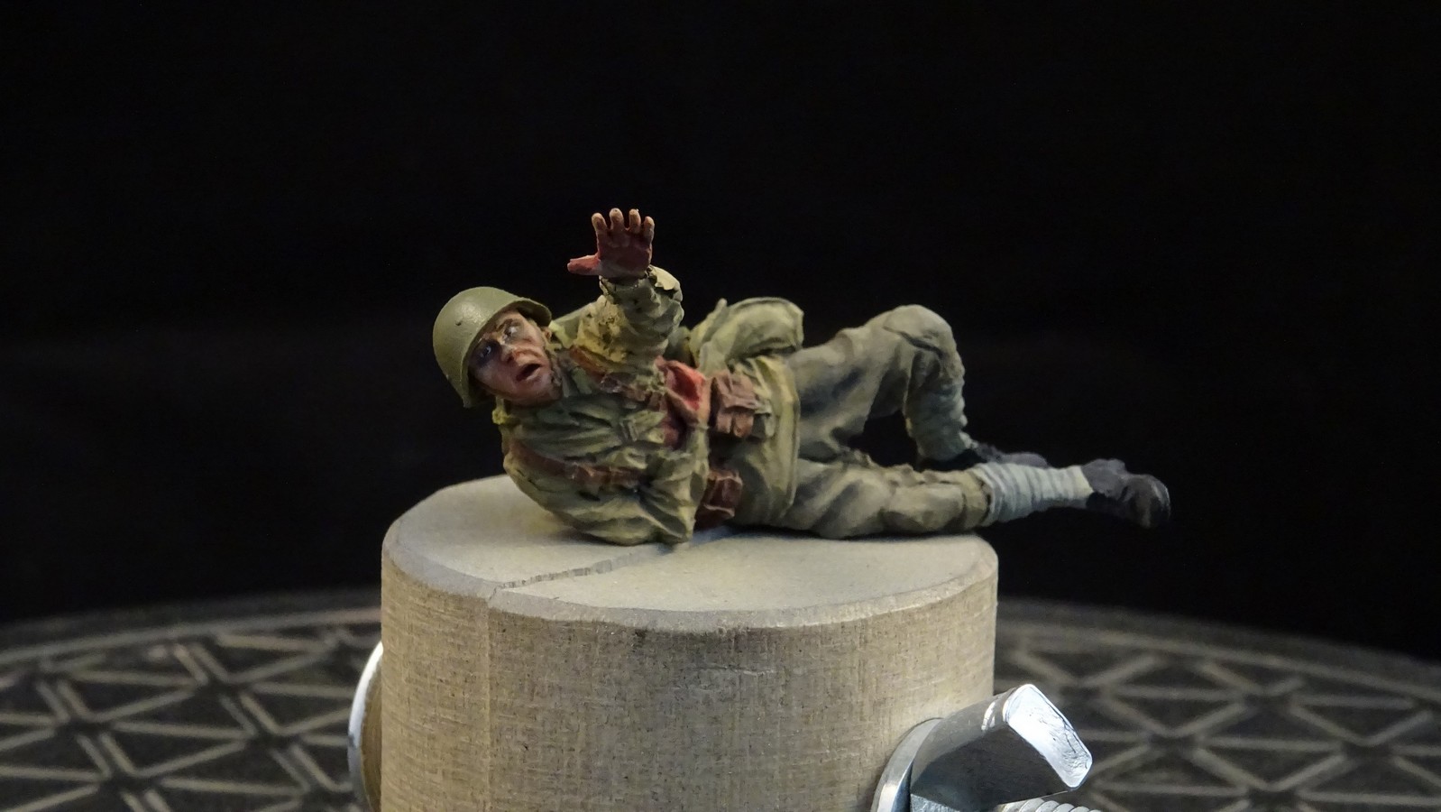 Необходимые оттенки краски для формы, лиц и снаряжения легко получались при смешивании. Однако и тут не обошлось без приключений, например форму и снаряжение немецких и советских солдат пришлось перекрашивать раза четыре, т.к. после высыхания оттенок немного менялся и отличался от того что я намешивал.
