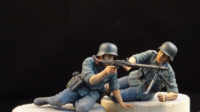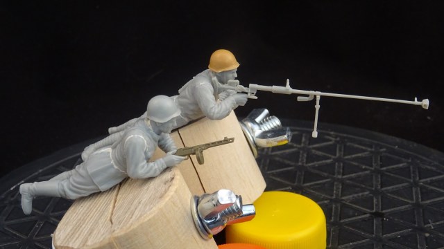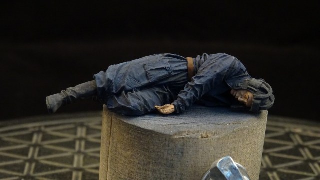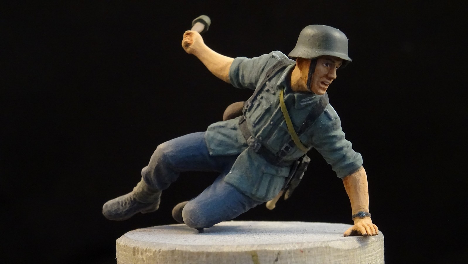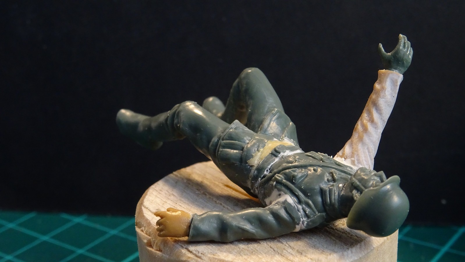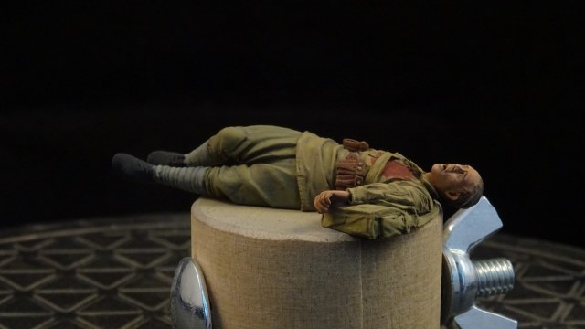 Необходимые оттенки краски для формы, лиц и снаряжения легко получались при смешивании. Однако и тут не обошлось без приключений, например форму и снаряжение немецких и советских солдат пришлось перекрашивать раза четыре, т.к. после высыхания оттенок немного менялся и отличался от того что я намешивал.