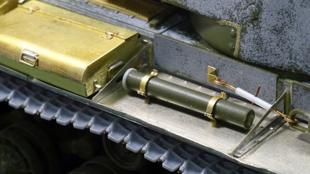 Ствол пулемета ДТ заменен на металлический, антенный ввод сделан из куска гитарной струны.
