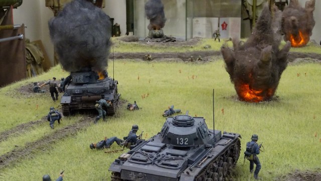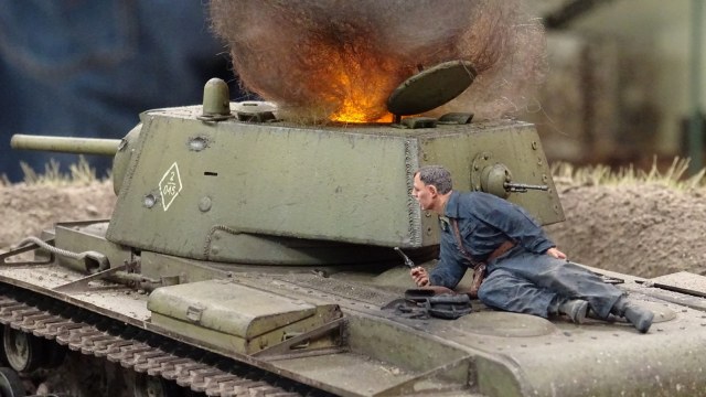 Для того что бы сделать диораму более живой, решено было сделать пару взрывов.