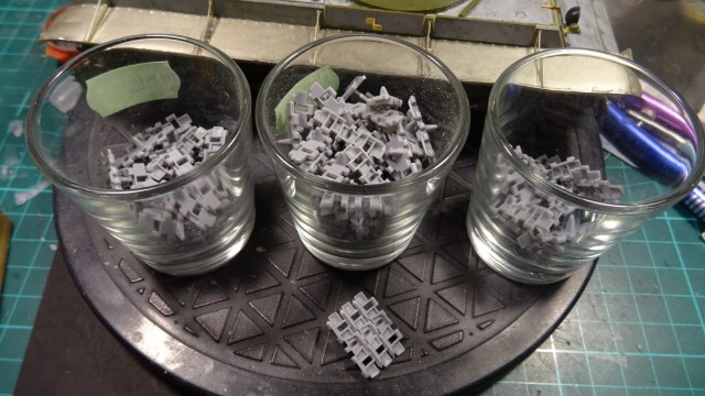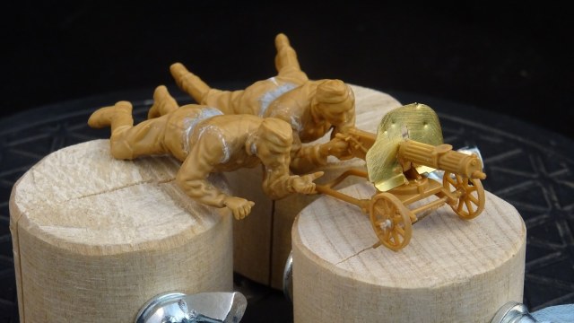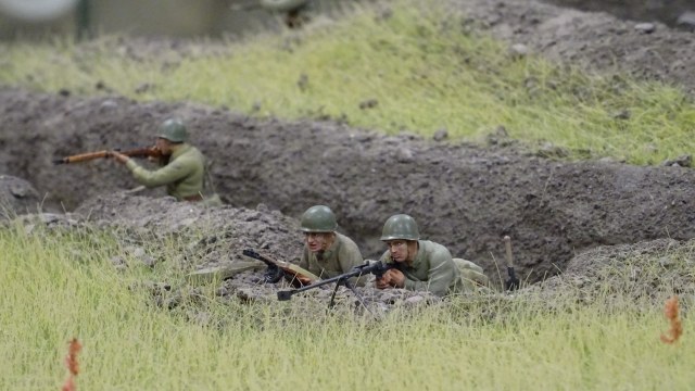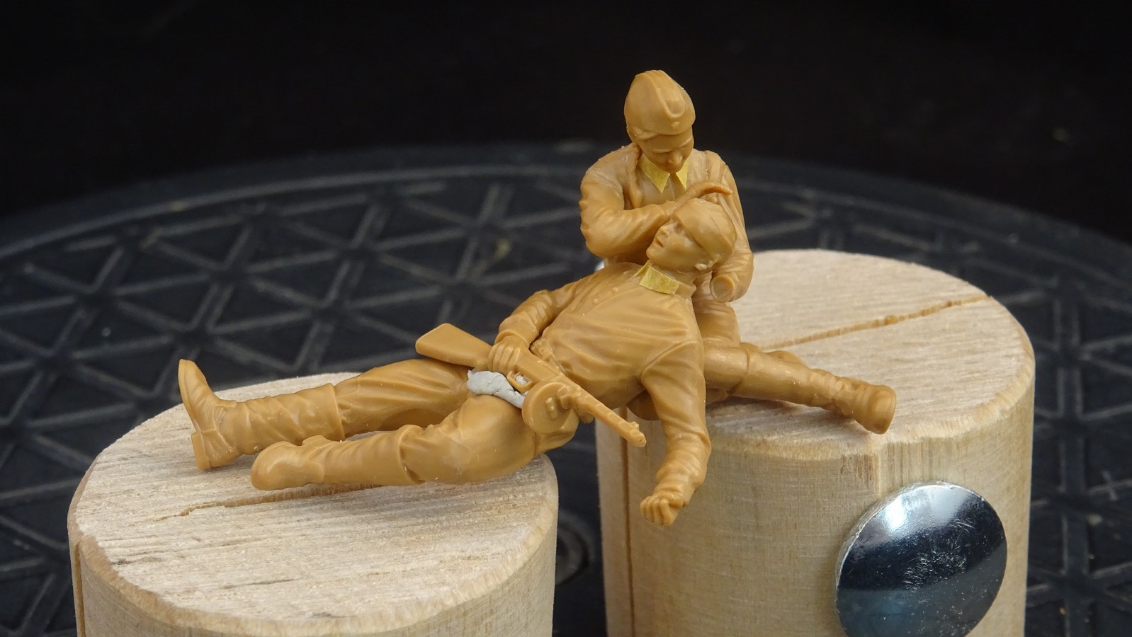 Для создания "массовки" пришлось запастить достаточно большим количеством наборов разных фирм, чтобы набрать нужное число бойцов. Причем некоторых бойцов ждал конкретный запил, дело в том, что нужных поз пришлось добиваться комбинируя части тела разных солдат. Пилились руки, ноги и туловища, в итоге удалось собрать более менее приличные отряды.