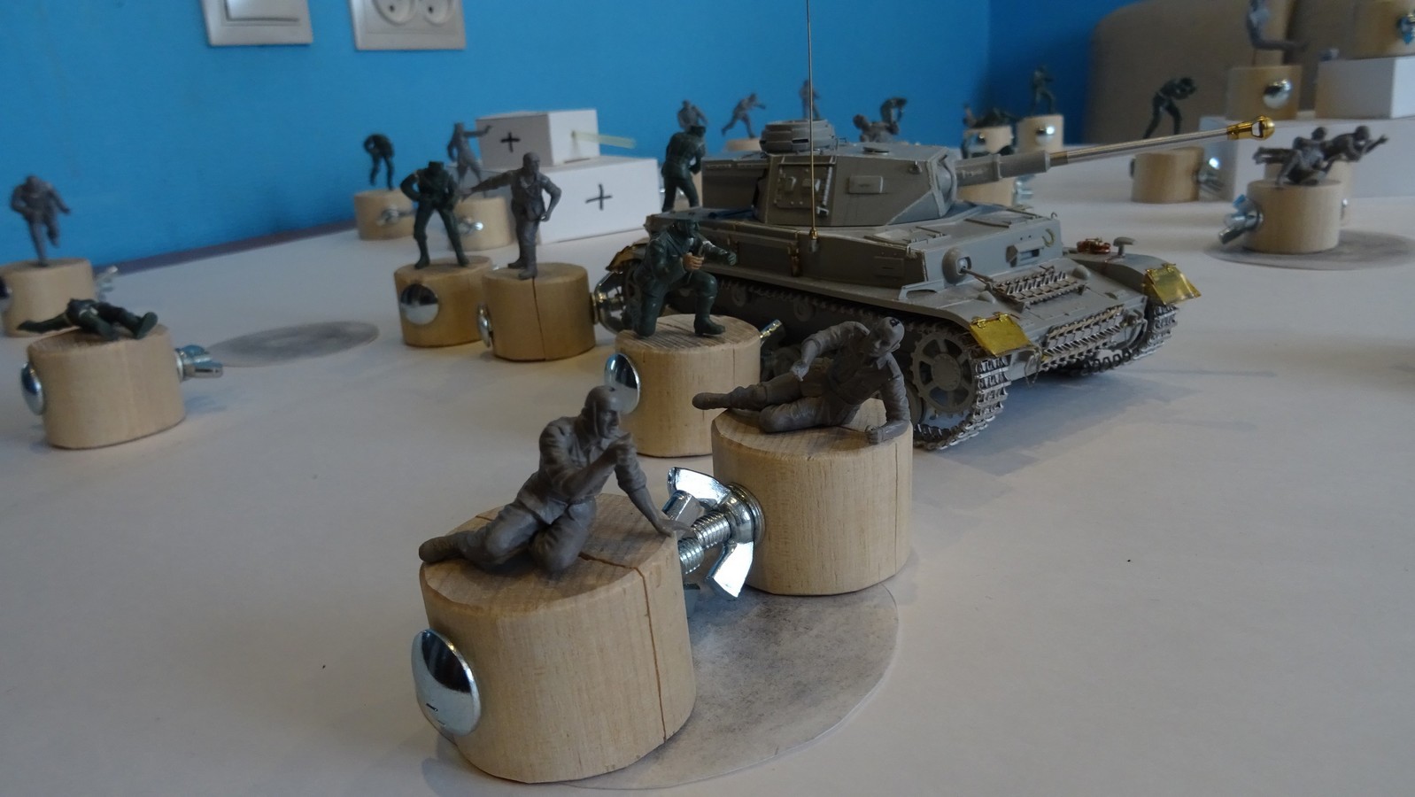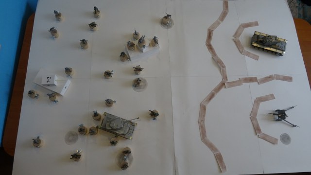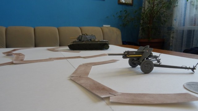 Сначала нужно было определится с расстановкой техники и миниатюр, что бы примерно представлять как и что будет.