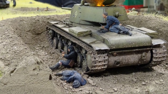 [JUSTIFY]В качестве локации, на которой будет изображен бой, был выбран участок донской степи, где заняли оборону советские войска. Размер диорамы составляет 1 м на 1,5 м, что в 35 масштабе соответствует участку фронту 35 на 52 метра. Из техники на ней представлены три средних немецких танка — это один танк Т3 версии J c 50 мм орудием, и два танка Т4 версии F1 и F2 с 75 мм орудиями. С советской стороны в капонире расположены тяжелый танк КВ и 76 мм дивизионная пушка Ф-22 УСВ. Количество пехоты с двух сторон, в общей сложности порядка 50 человек.[/JUSTIFY]