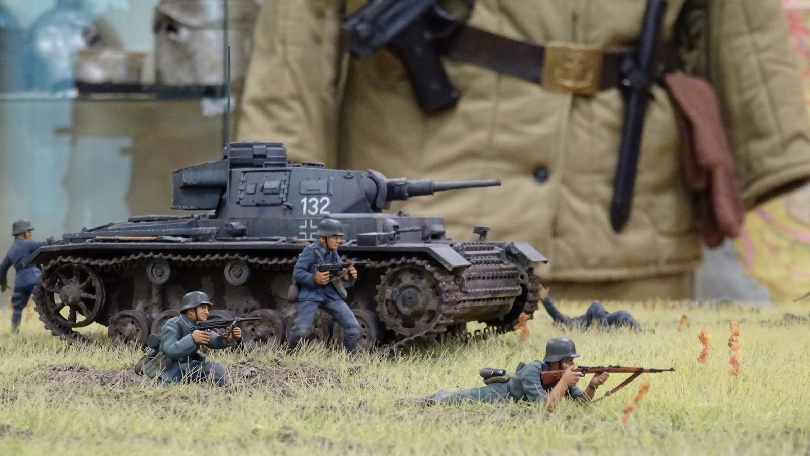 [JUSTIFY]В сборке моделей техники нам помогали еще два моделиста, обоих зовут Александрами. Для того чтобы бронетехника была максимально похожа на прототипы, были приобретены наборы дополнений, такие как металлические и пластмассовые гусеницы танков, металлические детали экстерьера и стволы орудий. Покраской решено было заняться одному человеку, мне, чтобы готовые модели имели единый стиль оформления.[/JUSTIFY]