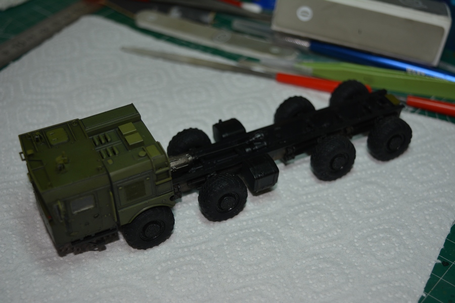 Подводя промежуточный итог можно сказать что рама модели это жертва унификации. Судя по её конструкции и деталировке она присутствует и на других моделях фирмы Modelkollect где базовым шасси является МАЗ 543 и его модификации. Но это не критично.