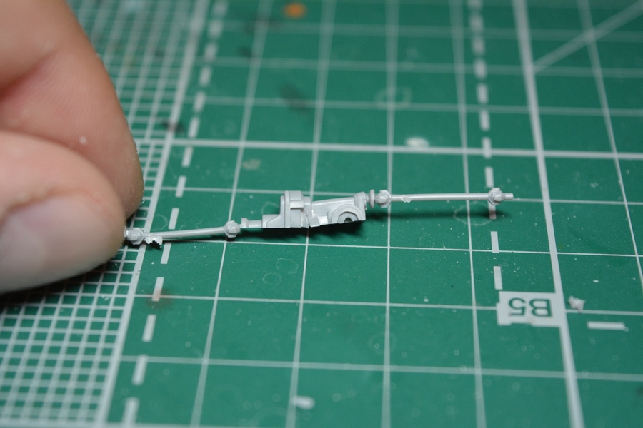 Потихоньку начал делать кабину, а именно пол. Торсионы отлиты с полом единым целым, пришлось их срезать и сделать трсионы из проволоки. Так же сделал подножки кабины.